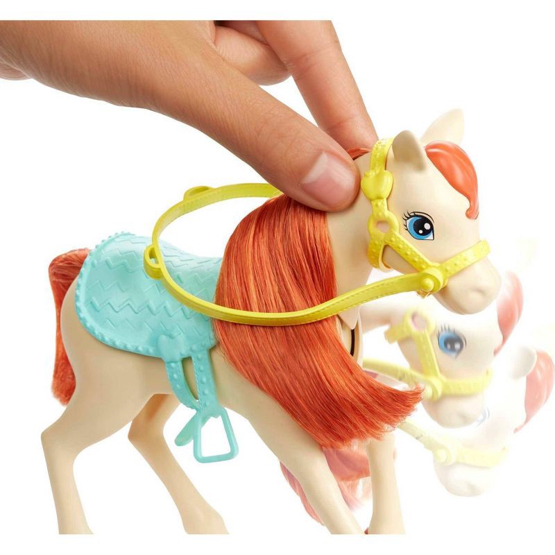 - The horse and pony have heads that bobble to mimic real movement -- each also has a colored saddle, bridle and reins for horseback riding role-play!