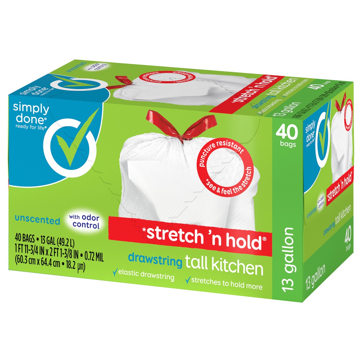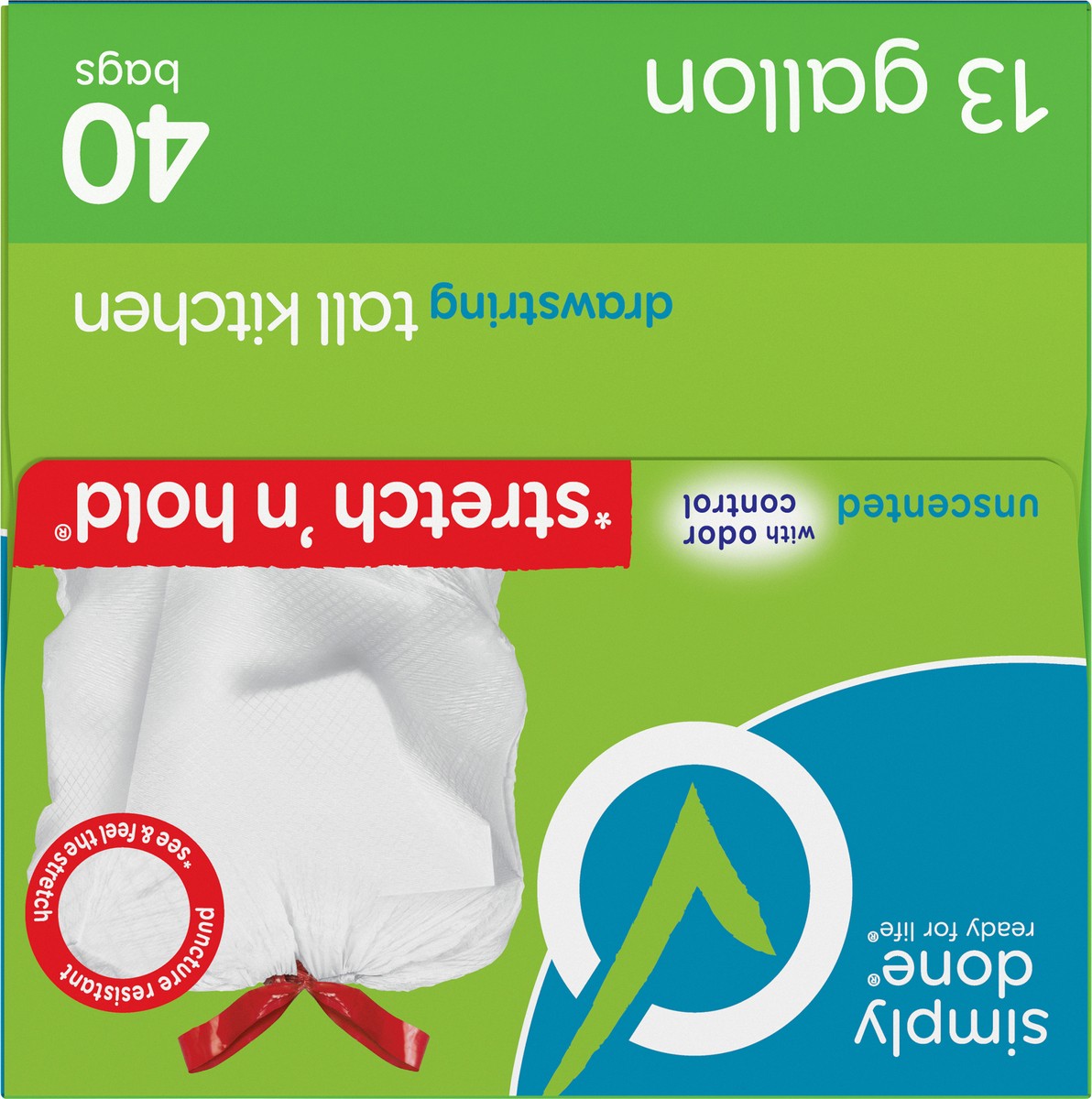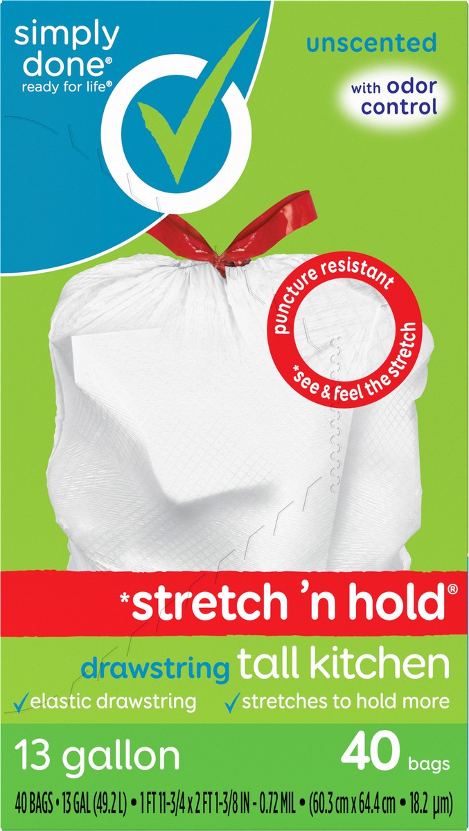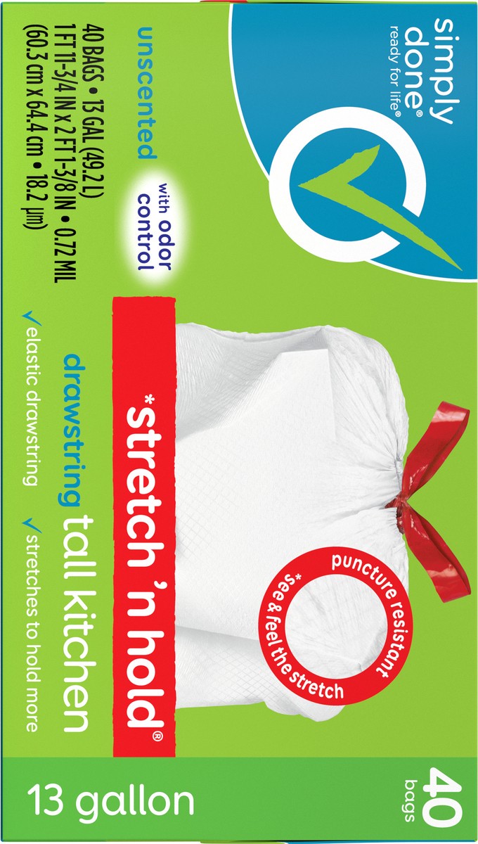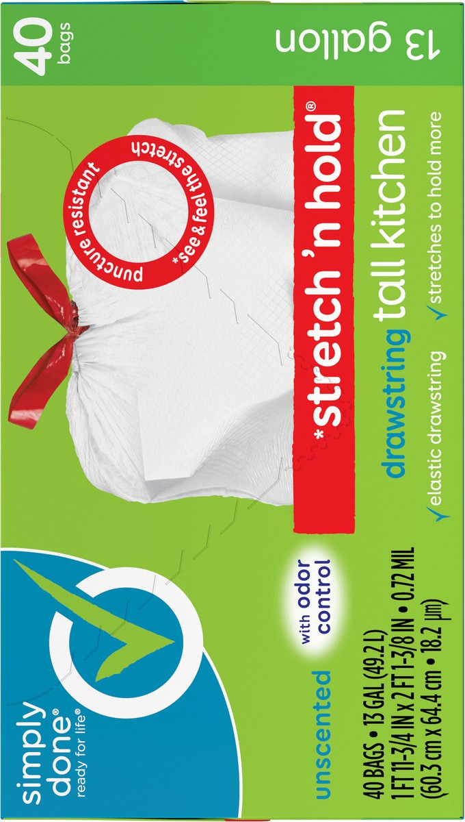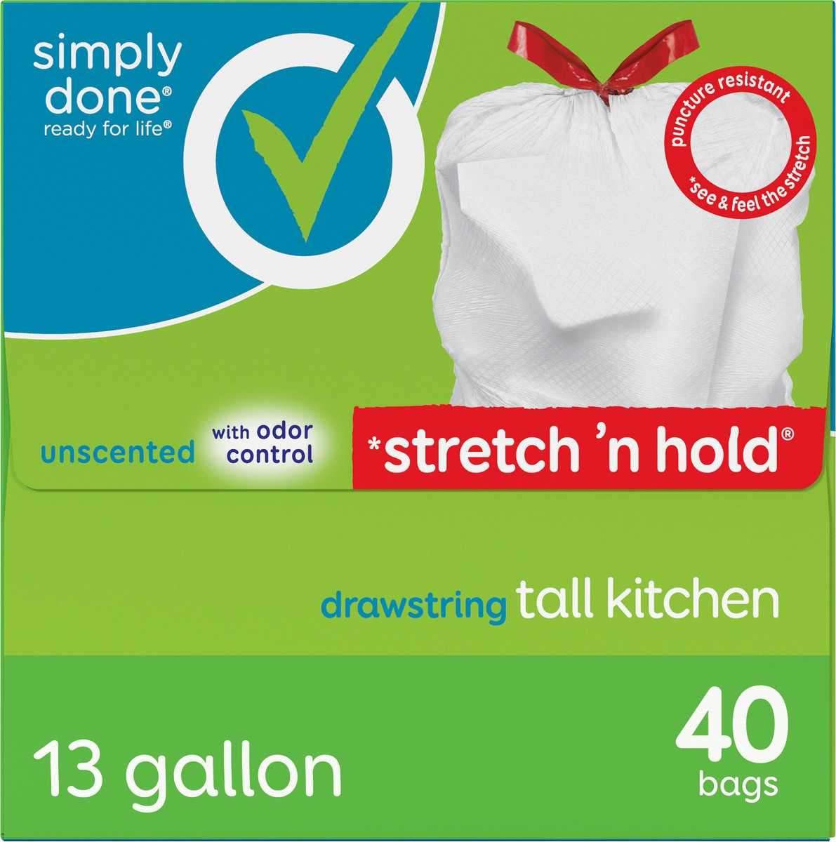 Simply Done Stretch 'n Hold Drawstring Unscented Tall Kitchen Bags - 13 Gallon, 40 count
