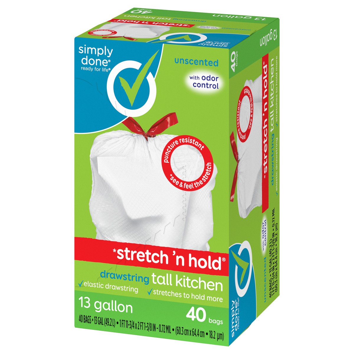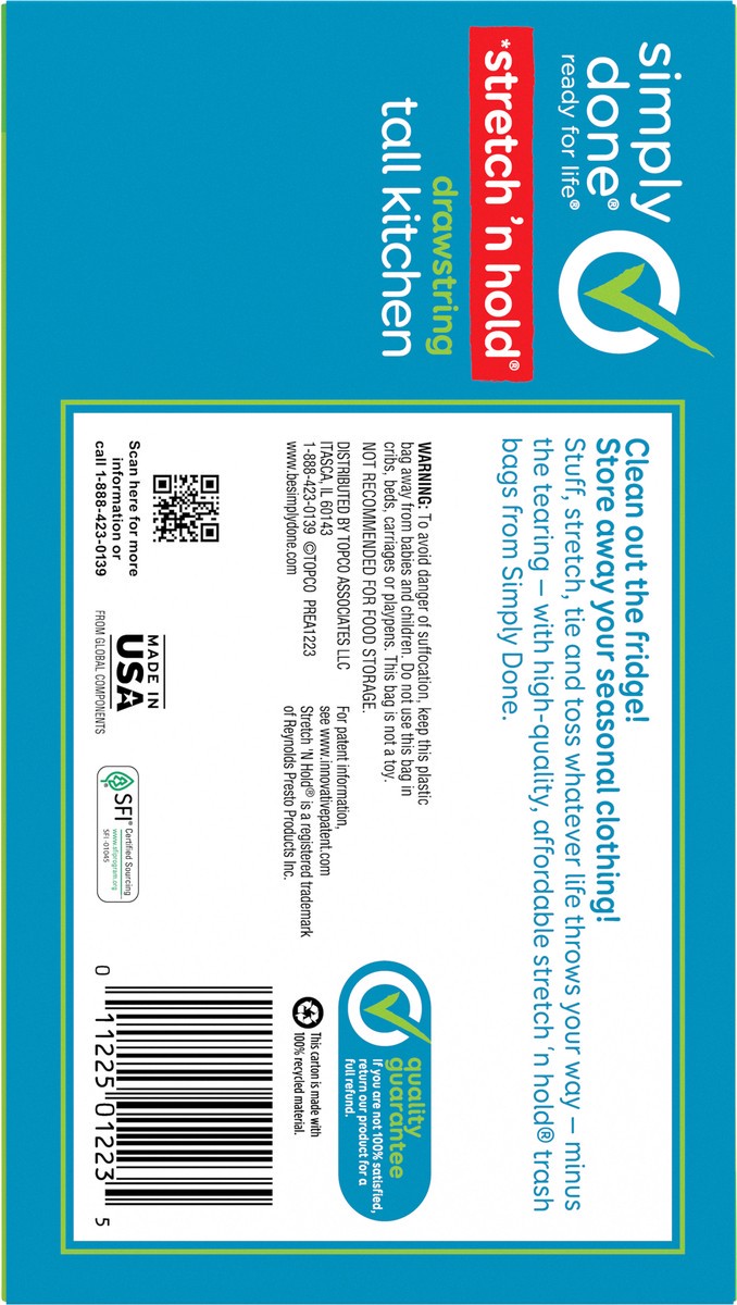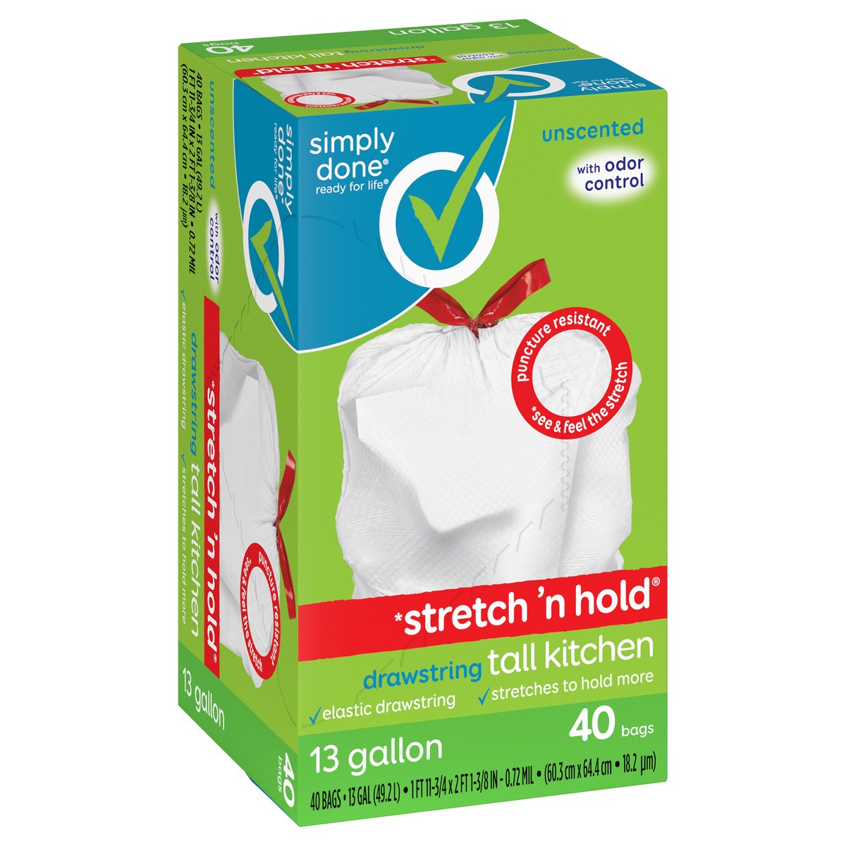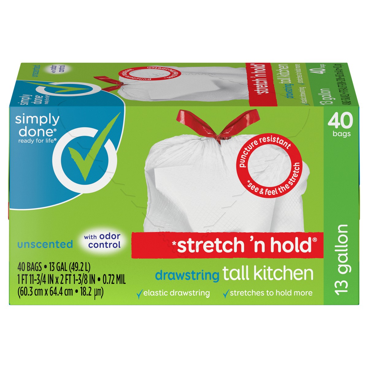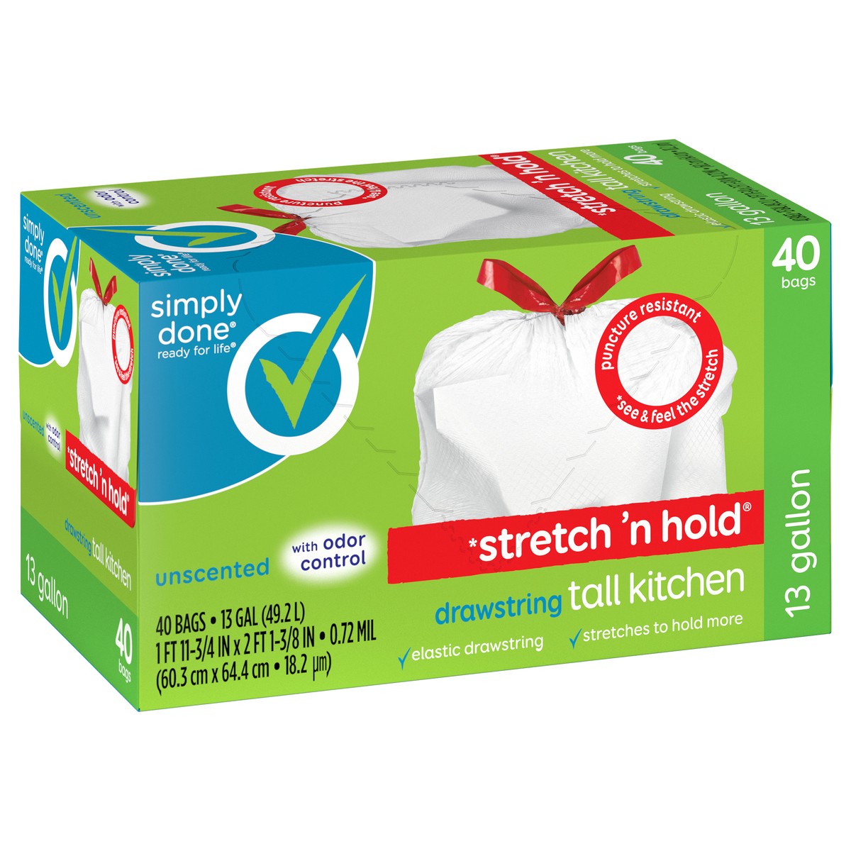 Simply Done Stretch 'n Hold Drawstring Unscented Tall Kitchen Bags - 13 Gallon, 40 count