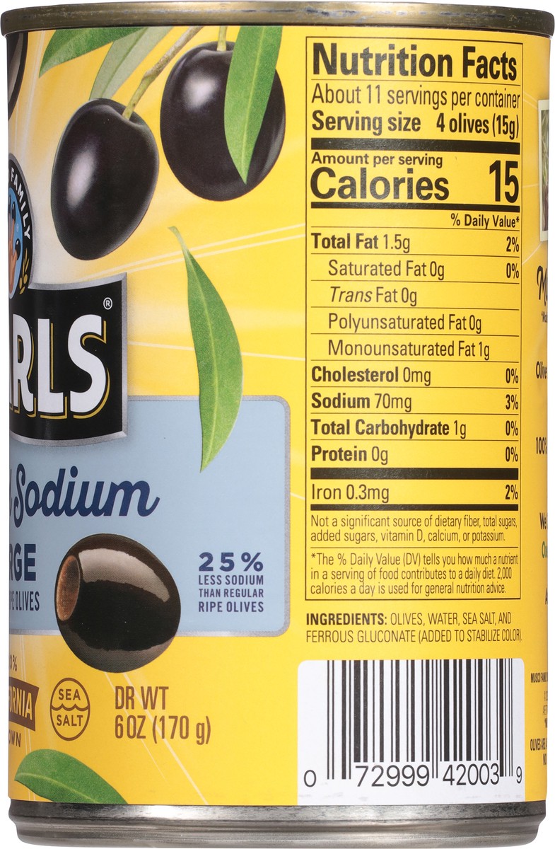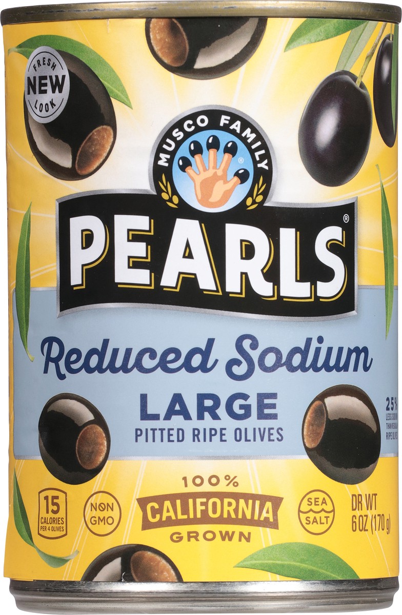 Pearls Reduced Sodium Large Pitted Ripe Olives 6 oz