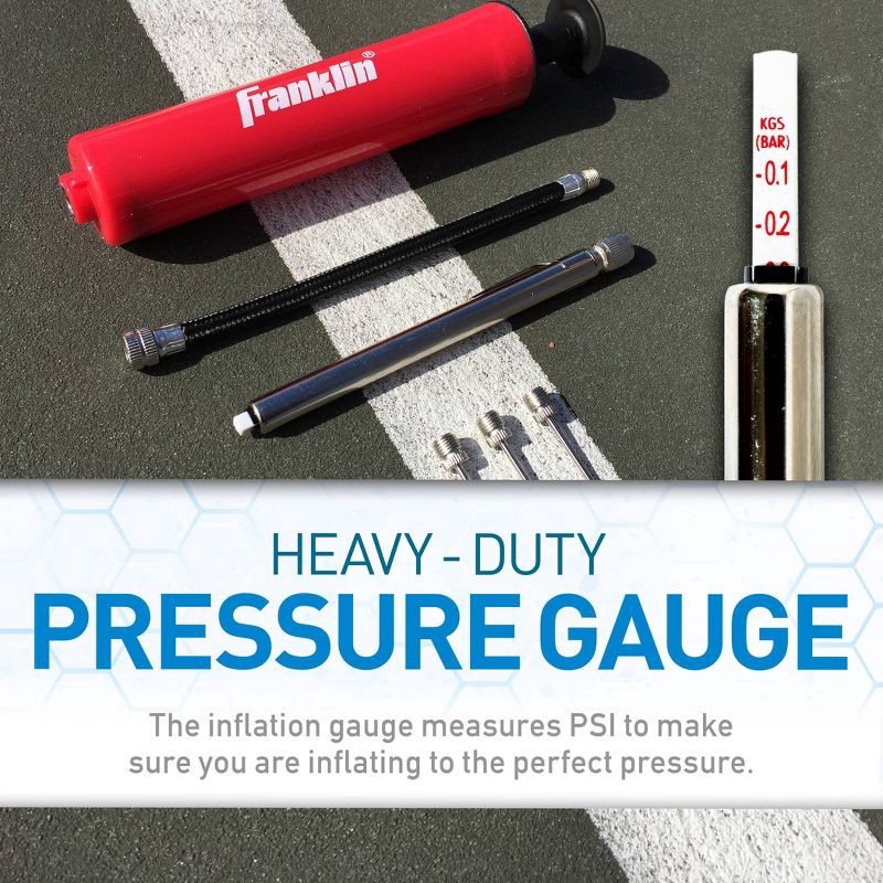 Keep all your footballs, basketballs and other items properly inflated with this Franklin Sports Ball Maintenance Kit. This 8 piece set comes with three metal needles, a pressure gauge, an inflating p…