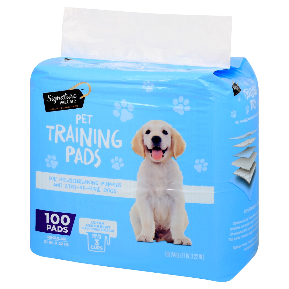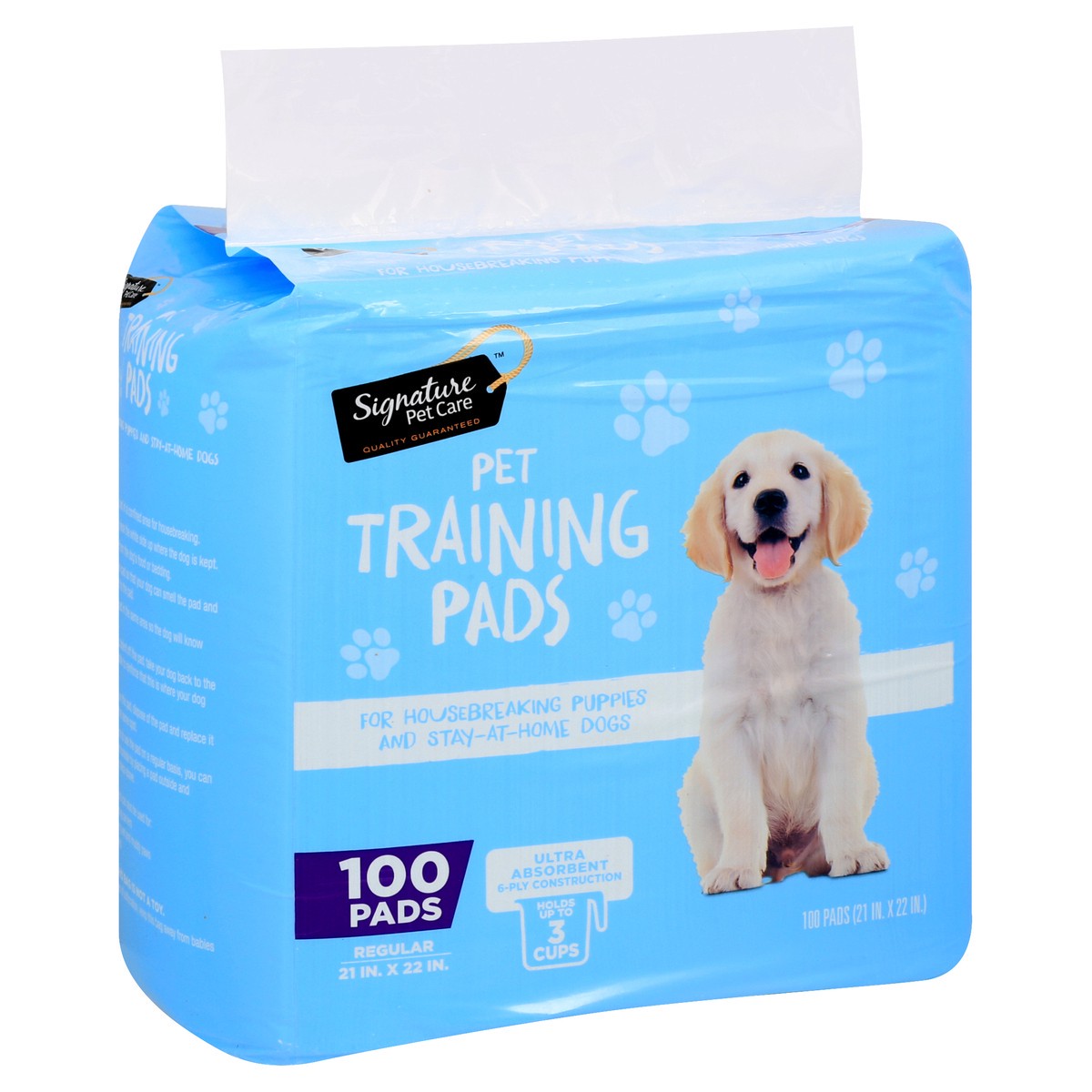slide 1 of 9, Signature Pet Care 6-Ply Ultra Absorbent Regular Pet Training Pads 100 ea,