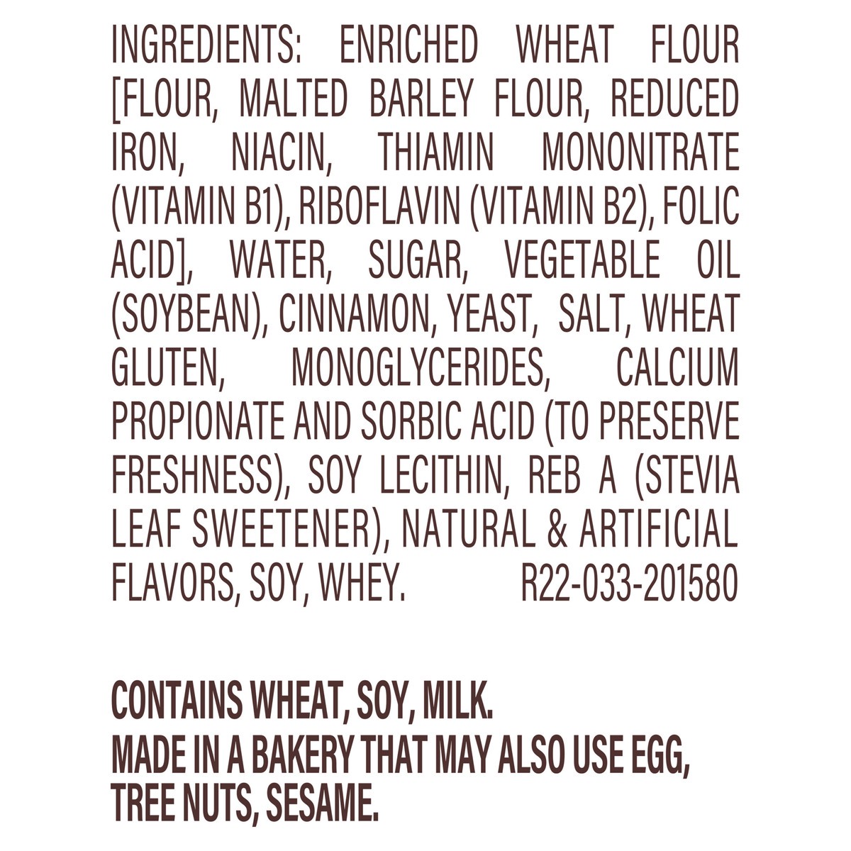 Enriched Wheat Flour [Flour, Malted Barley Flour, Reduced Iron, Niacin, Thiamin Mononitrate (Vitamin B1), Riboflavin (Vitamin B2), Folic Acid], Water, Sugar, Vegetable Oil (Soybean), Yeast, Cinnamon, …