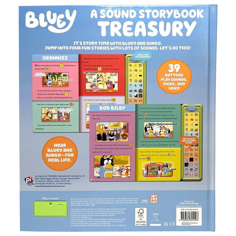 Join Bluey, Bingo, and their friends on a fun, sound-filled reading adventure with the Bluey Sound Storybook Treasury! This adorable padded hardcover collection features four popular stories from the …