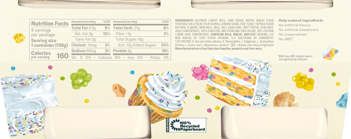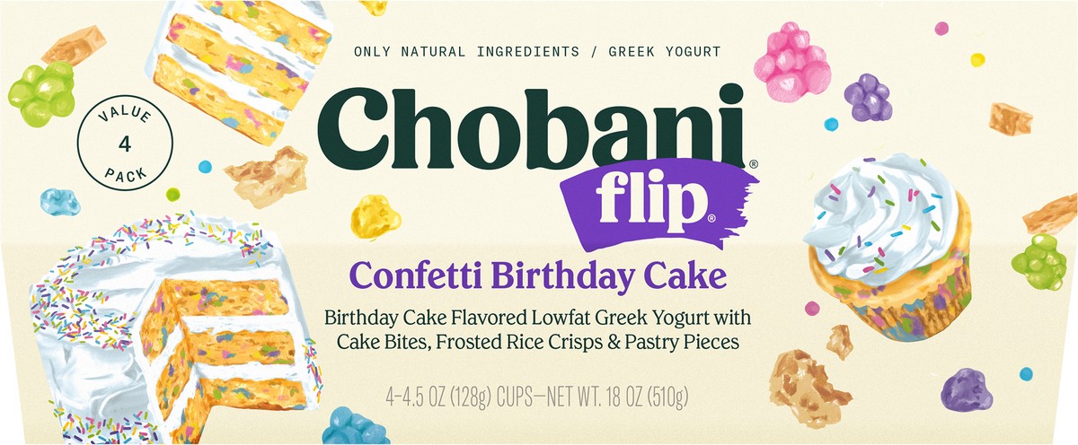 Chobani Flip Lowfat Greek Yogurt Confetti Birthday Cake 4.5oz 4PK