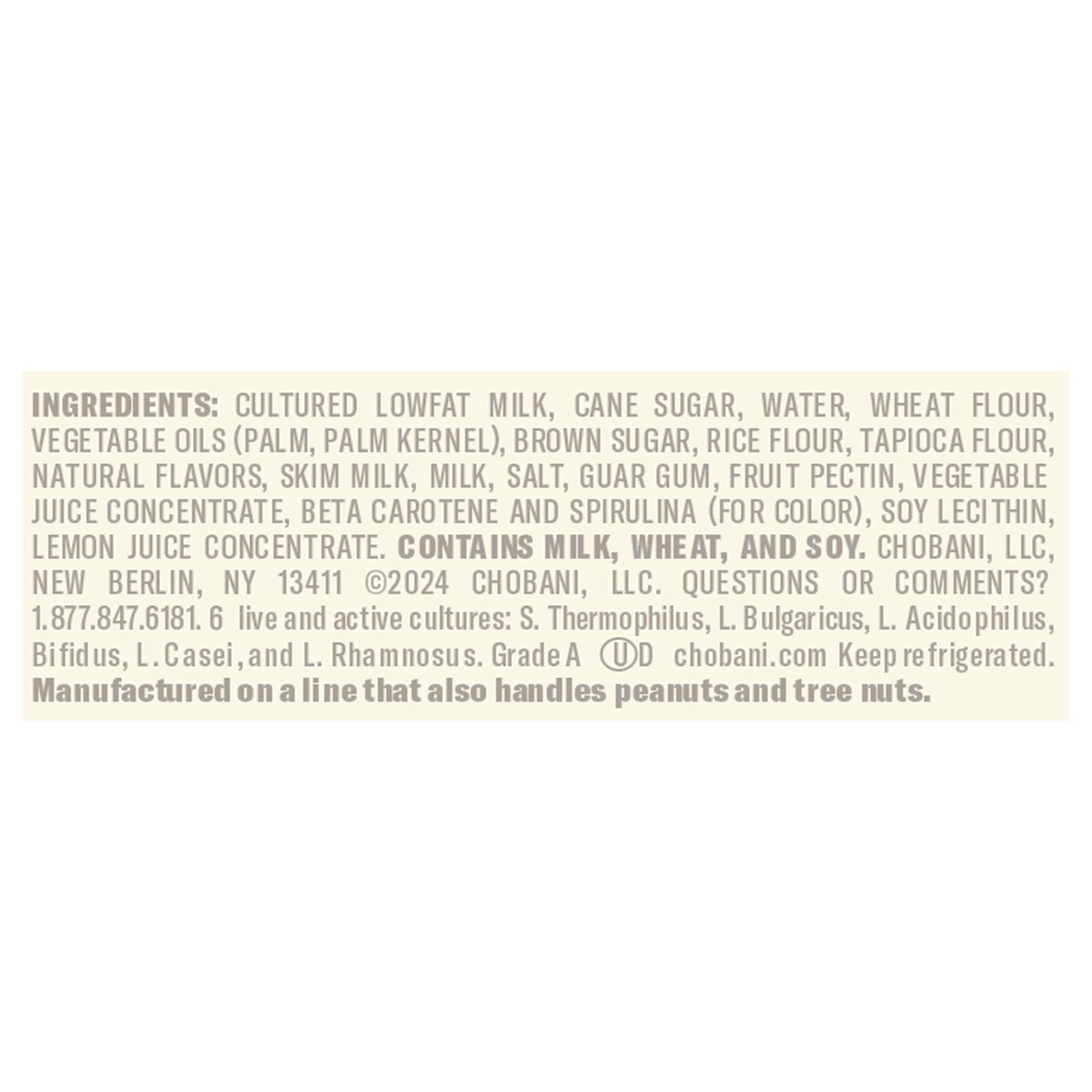 Cultured Lowfat Milk, Cane Sugar, Water, Wheat Flour, Vegetable Oils (Palm, Palm Kernel), Brown Sugar, Rice Flour, Tapioca Flour, Natural Flavors, Skim Milk, Milk, Salt, Guar Gum, Fruit Pectin, Vegeta…