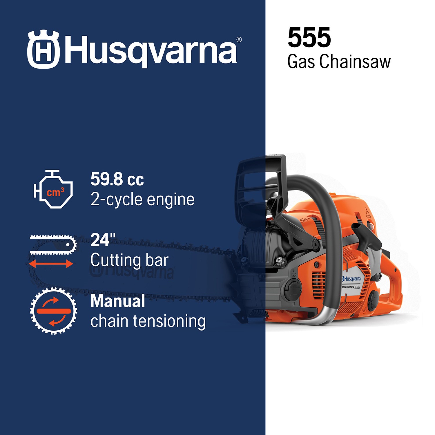 Husqvarna 555 24 Inch Gas Chainsaw offers an impressive cutting capacity and maximum durability and features a slimmed-down gas chainsaw design. Smart Start allows easy start up with minimal effort, w…