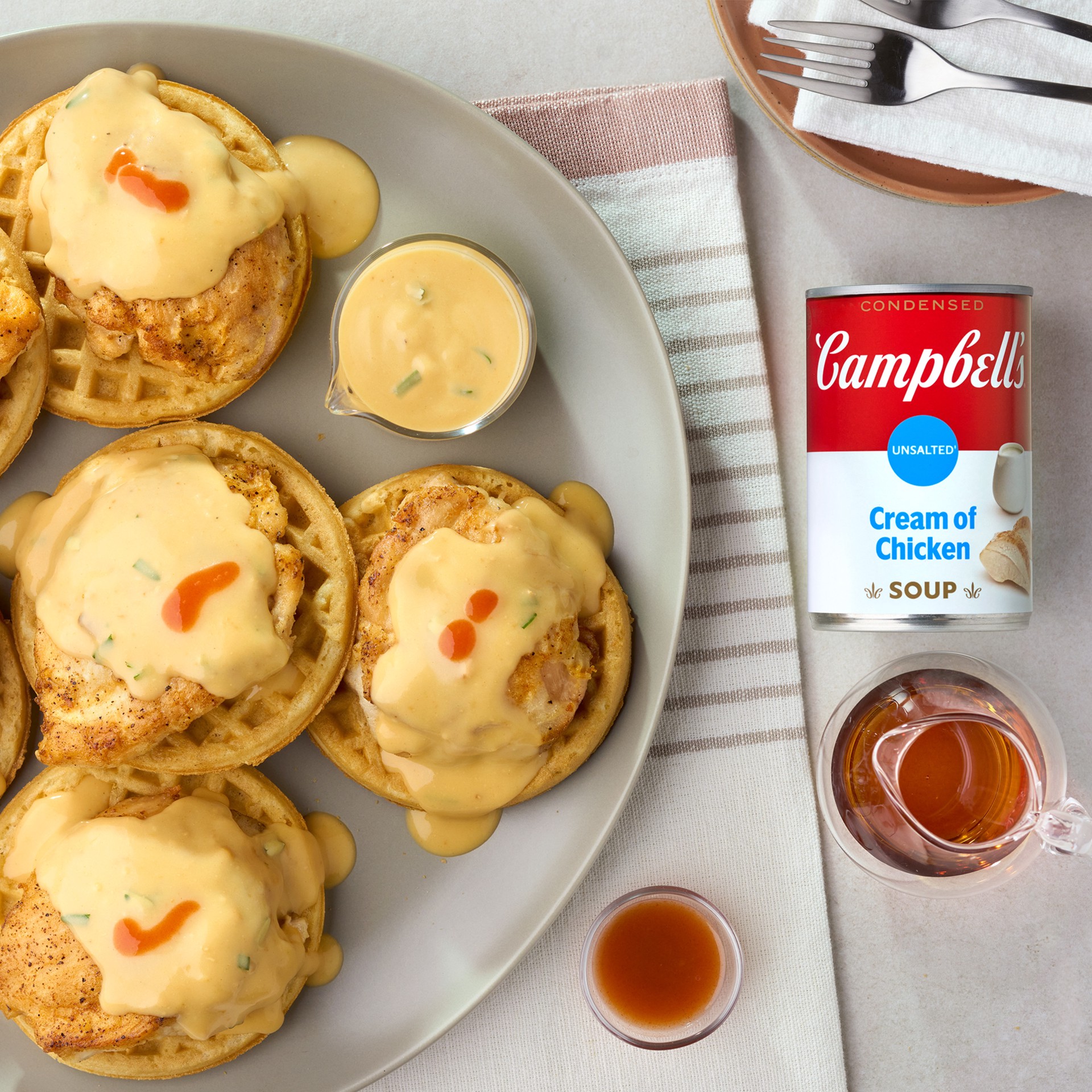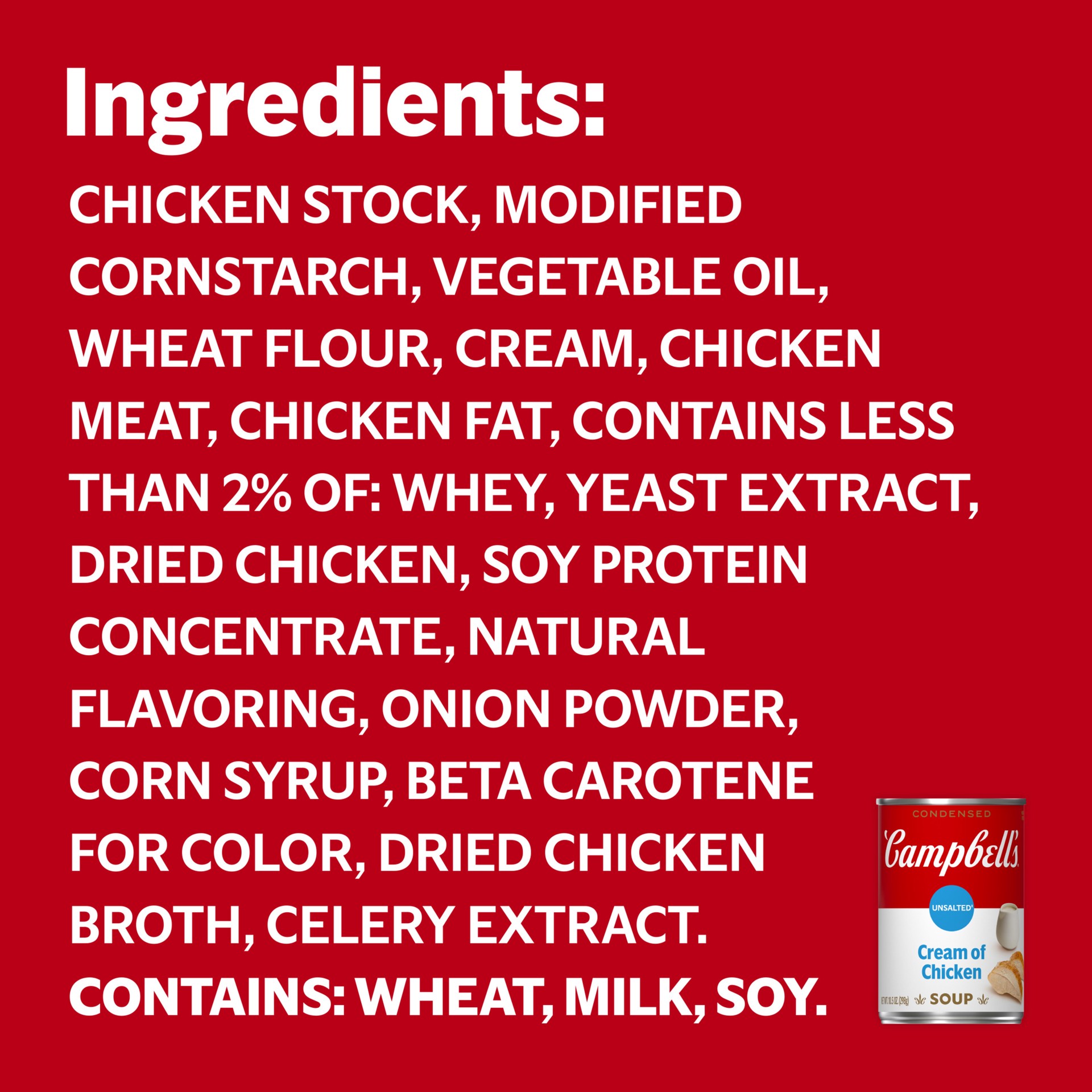 Add rich, creamy flavor to your favorite dishes with Campbell's Condensed Unsalted* Cream of Chicken Soup. This creamy chicken soup is crafted with farm-fresh cream, high-quality chicken stock, tender…