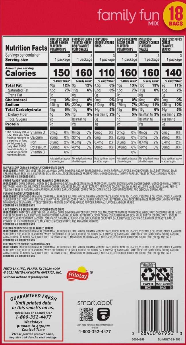Frito Lay Family Fun Mix Variety Pack - 18 Count