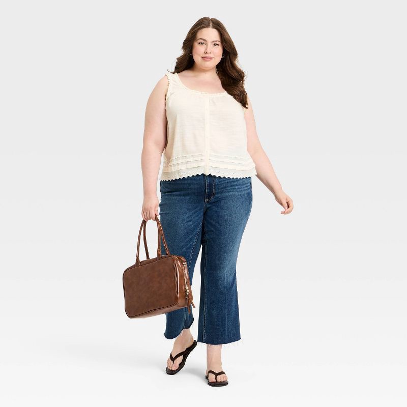 Slay in style with this Pintuck Blouse from Universal Thread™. Made from a fabric blend of cotton, modal and recycled cotton, this sleeveless blouse offers all-day comfort. It features pintuck detaili…