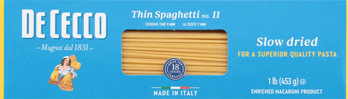 slide 1 of 11, De Cecco Pasta No. 11 Spaghetti Thin Box - 1 Lb, 16 oz
