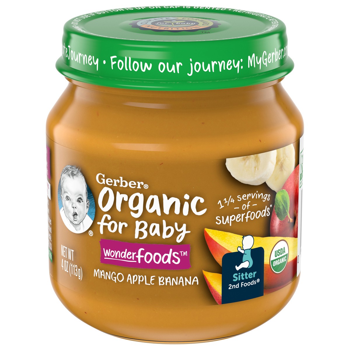 Gerber Stage 2 Baby Food, Organic Mango Apple Banana Jar, Non-GMO, Baby Puree
