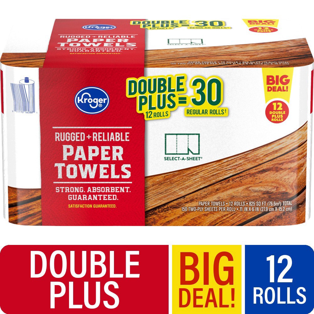 Kroger® Rugged + Reliable Paper Towels Double Plus Rolls BIG DEAL! are our strongest paper towel yet, built to withstand the toughest cleaning tasks. They are designed with a strong and sturdy constru…