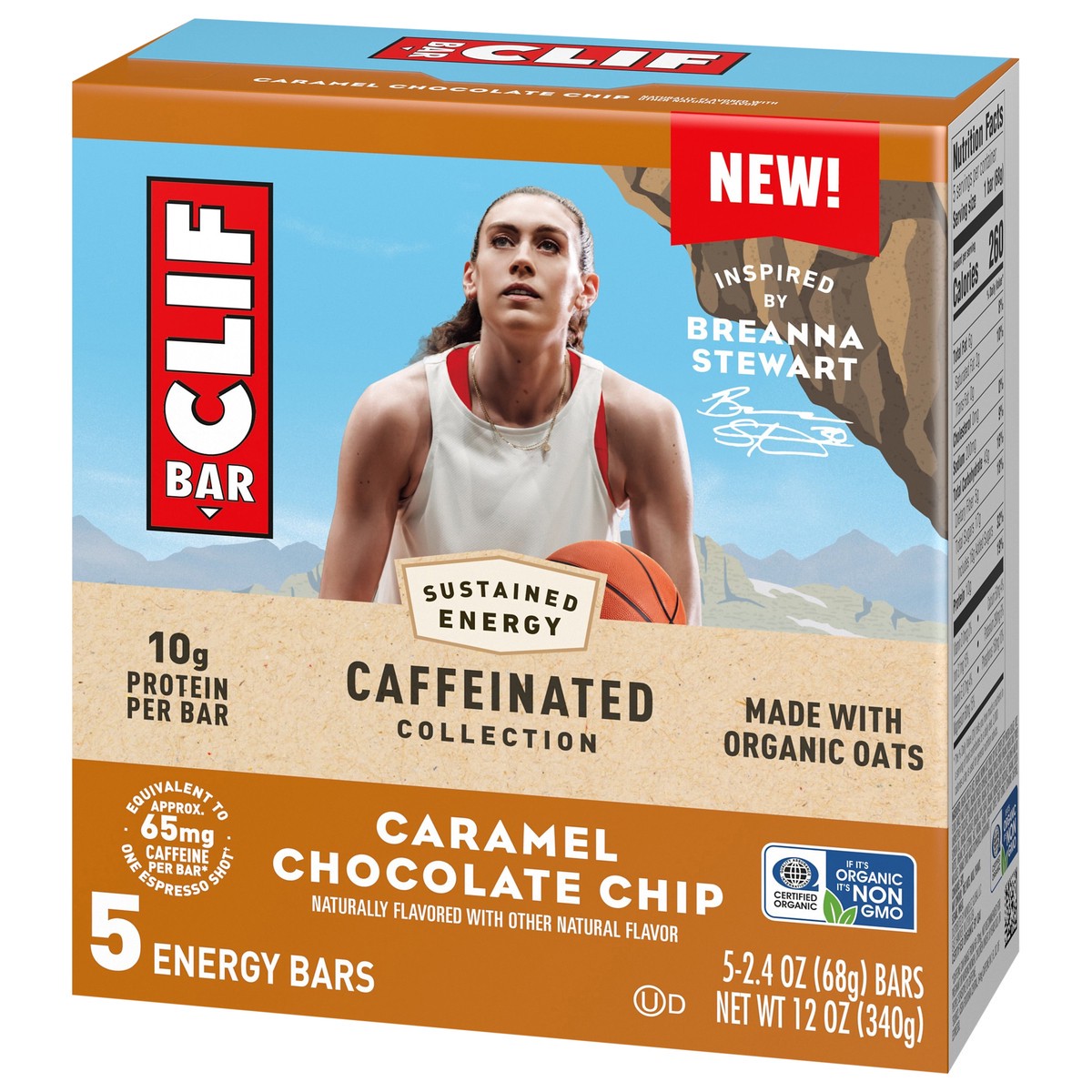 - CARAMEL CHOCOLATE CHIP FLAVOR: One 5-pack box of CLIF BAR Caffeinated Collection Caramel Chocolate Chip Energy Bars to add a kickstart of caffeine to your workout (packaging may vary)