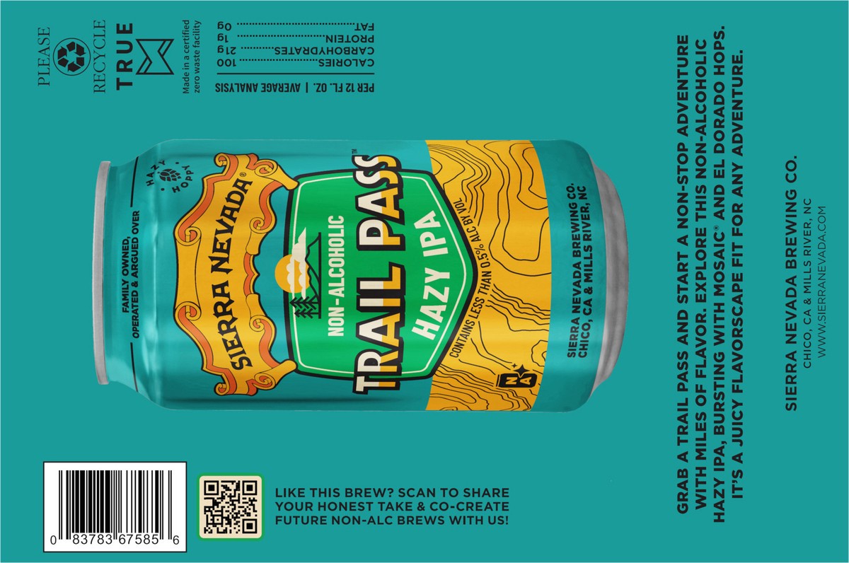 Sierra Nevada Trail Pass Non-Alcoholic Hazy IPA Craft Beer 6 Pack (12 oz Cans)