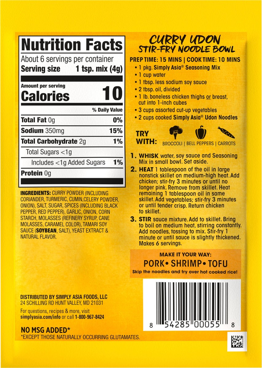 Simply Asia Curry Udon Stir-Fry Noodle Bowl Seasoning Mix is a dream come true when it comes to making rich, satisfying udon noodle bowls at home. Prepare with chicken, pork, shrimp, or tofu and let t…