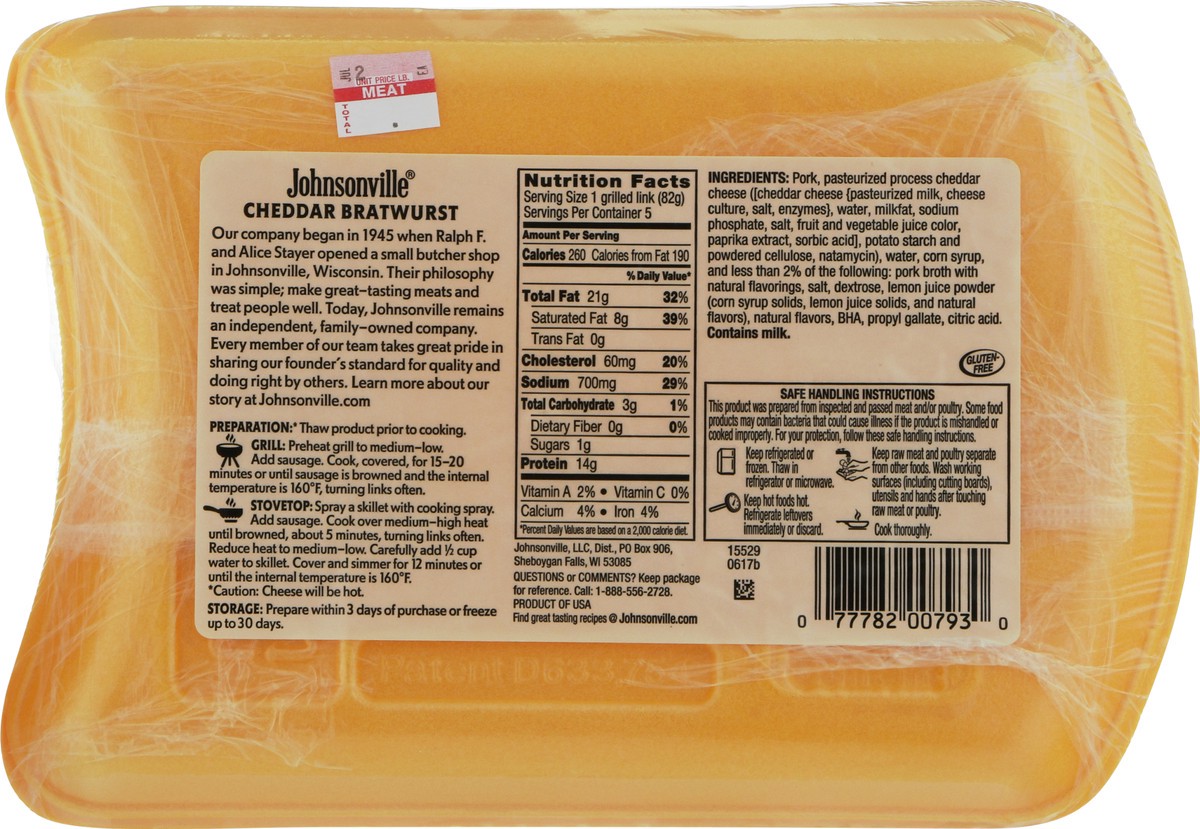 Johnsonville Cheddar Bratwurst Brats 5 Links - 19 Oz