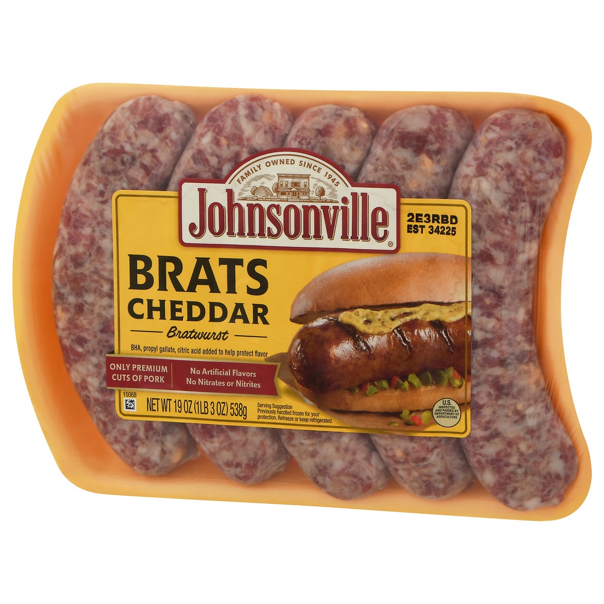 Johnsonville Cheddar Bratwurst Brats 5 Links - 19 Oz