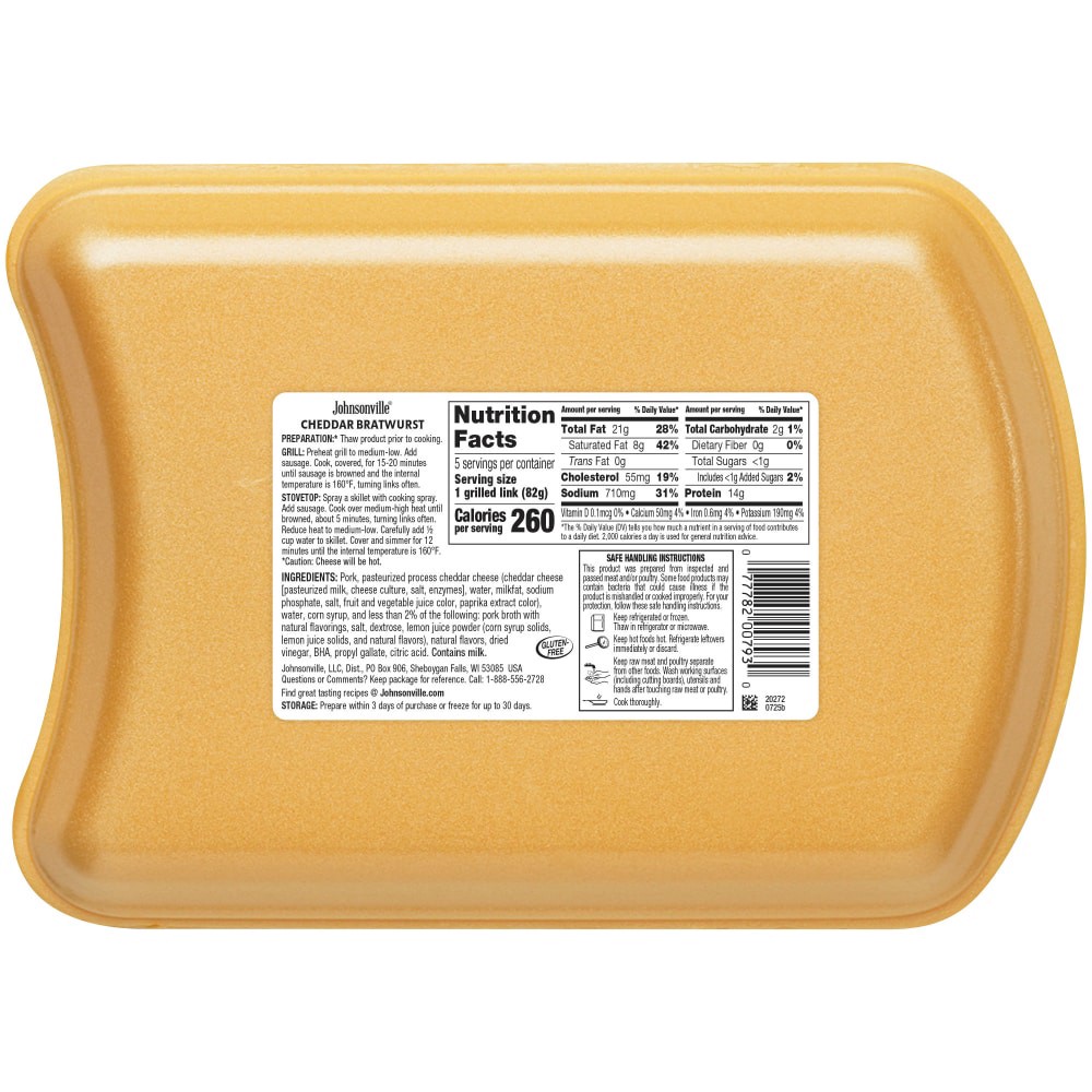 Johnsonville Brats Cheddar Bratwurst 19 oz