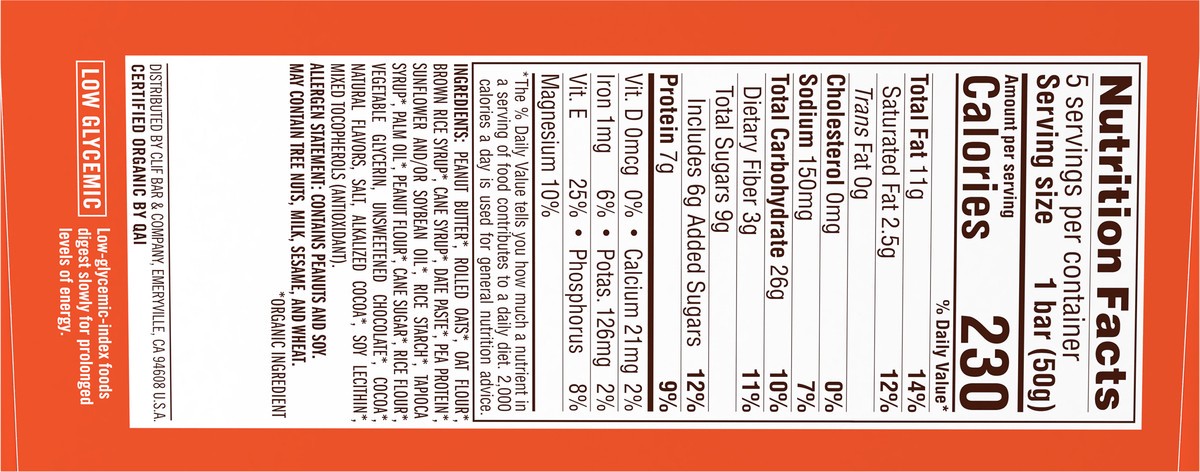 Clif Nut Butter Bar Chocolate Peanut Butter Organic Filled Energy Bars - 5-1.76 Oz