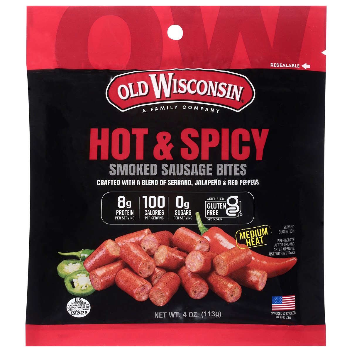 Old Wisconsin Medium Heat Hot & Spicy Smoked Sausage Bites 4 oz