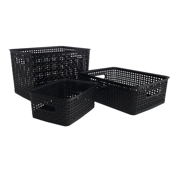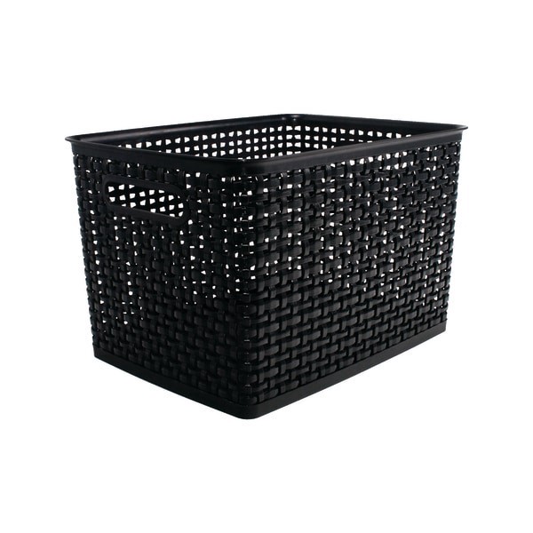 Organize your home or office Sturdy plastic construction for durability. Open top for easy access. Ideal for shelf, bookcase or closet storage. Woven for a stylish look.
