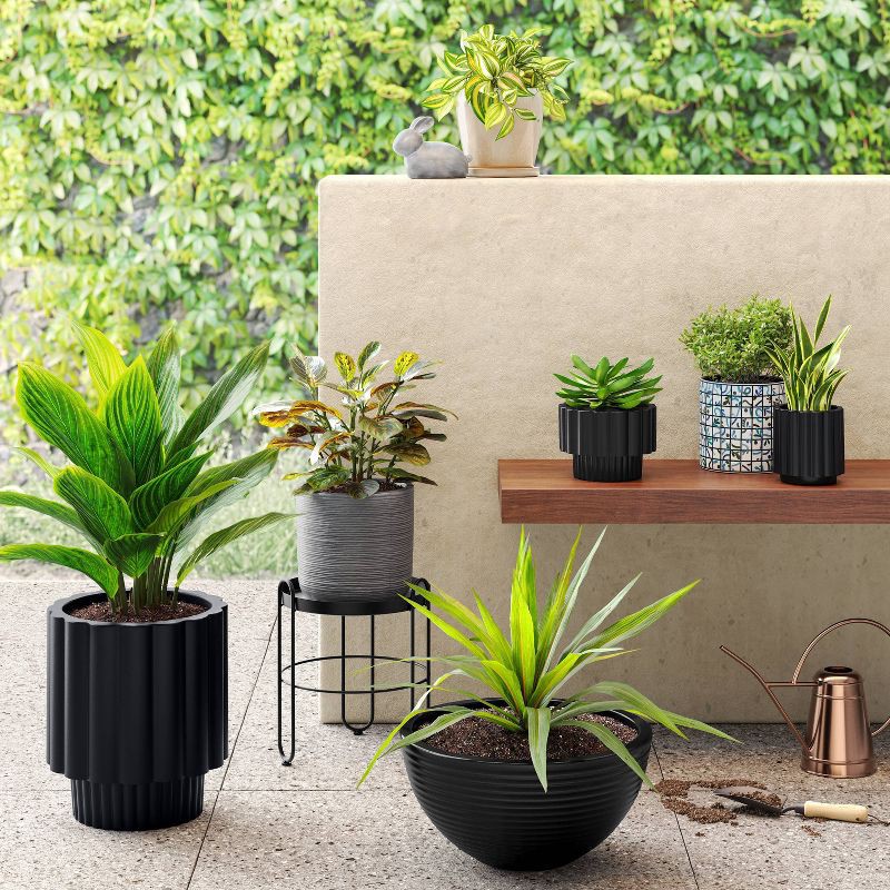 Make your outdoor space feel more inviting with this Grooved Bowl Outdoor Planter from Threshold™. Made with recycled plastic, this round bowl is designed in black and features a grooved design for a …