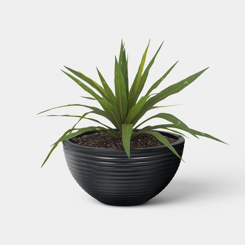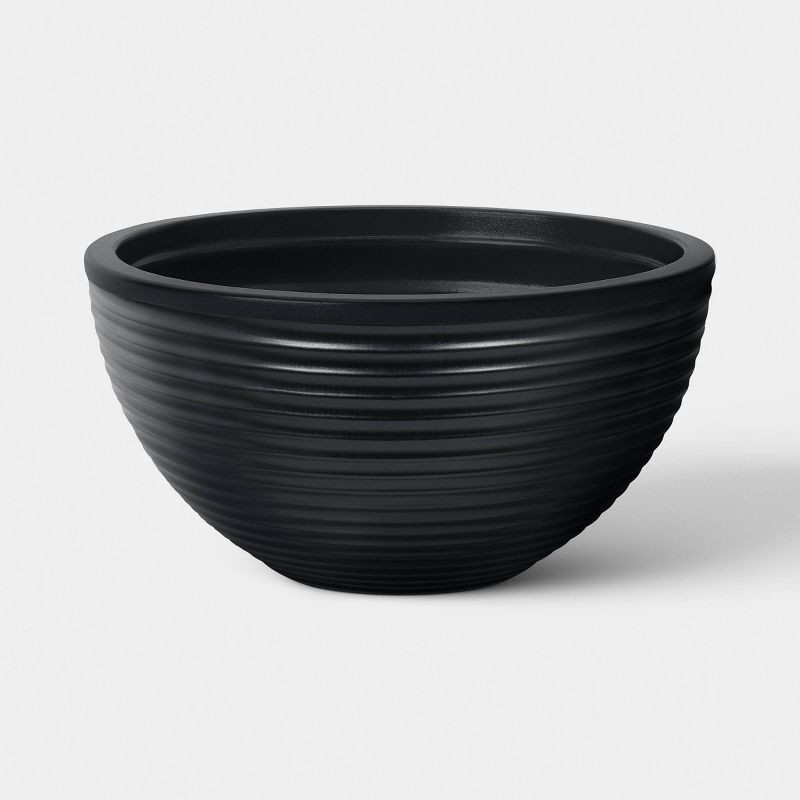 Grooved Bowl Outdoor Planter Black 20"x10" - Threshold™