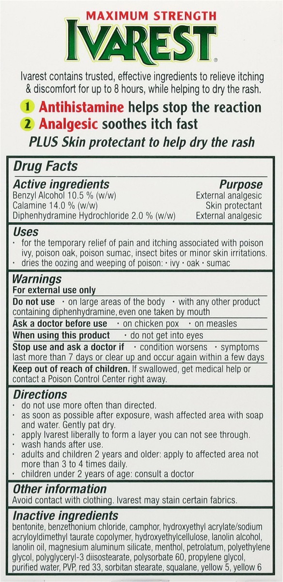 Ivarest Double Relief Formula Maximum Strength Poison Ivy Itch Cream 2 oz