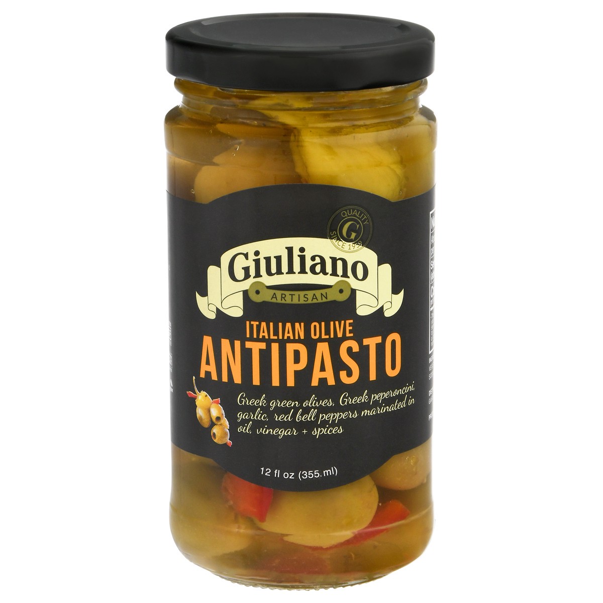 Olives, Water, Peppers, Garlic, Salt, Vegetable Oil, Distilled Vinegar, Lactic Acid, Sodium Benzoate, Sodium Bisulfite.