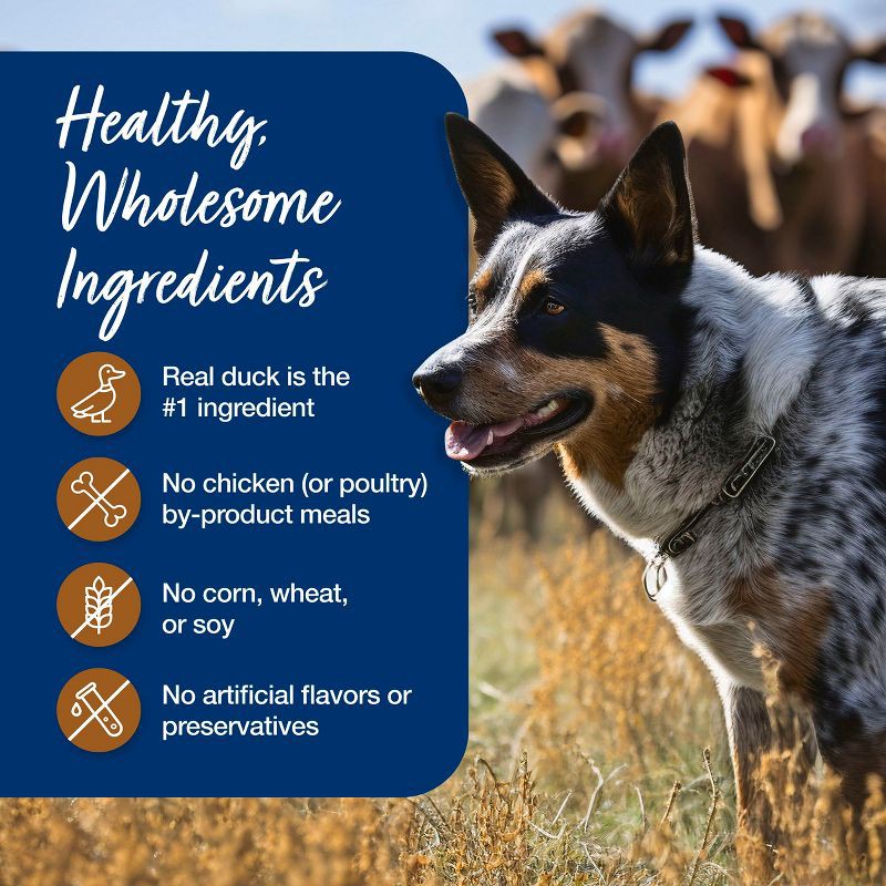 - WHOLESOME INGREDIENTS: This dog food contains no chicken (or poultry) by-product meals, no corn, wheat (a common thickening agent used by other brands), or soy, and no artificial flavors or preservatives