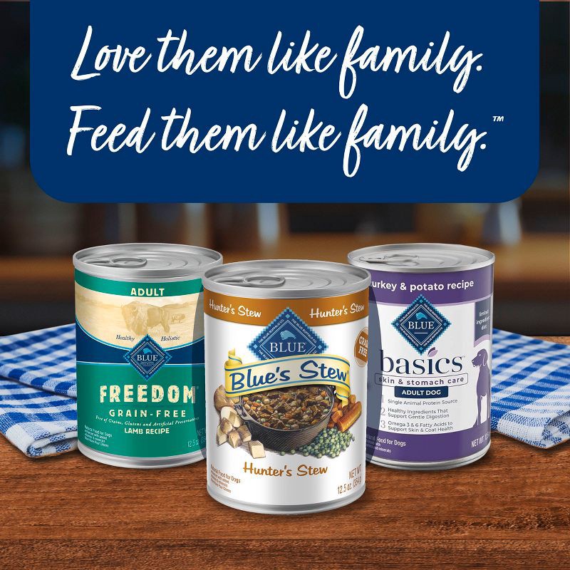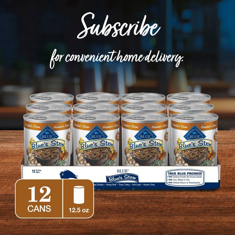 - Contains: One (1) 12.5-oz. can of Blue Buffalo Blue's Hunter's Stew Grain-Free Wet Dog Food