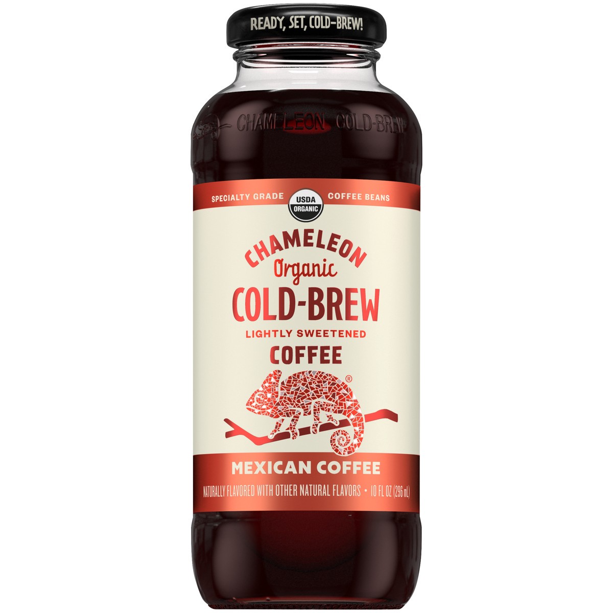 - One 10 fl oz bottle of Chameleon Organic Mexican Flavored Cold Brew CoffeeThis Mexican flavored coffee features a blend of cinnamon