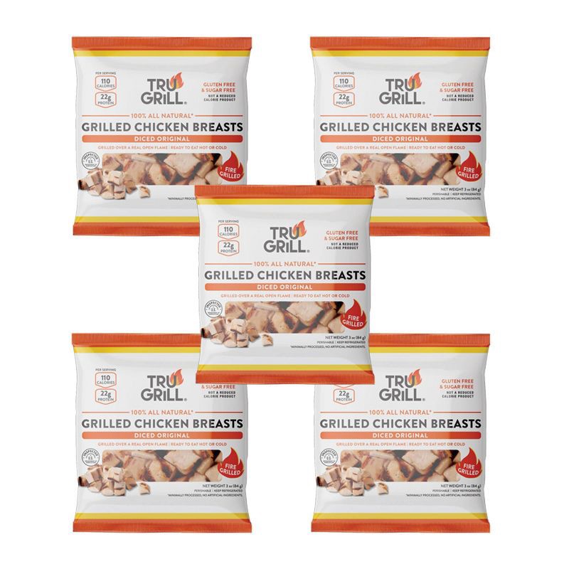 TRU GRILL® Diced Original Grilled Chicken Breasts are 100% all natural, fire grilled over a real open flame, then diced and fully cooked for quick, no prep protein you can enjoy hot or cold. Each 3 oz…