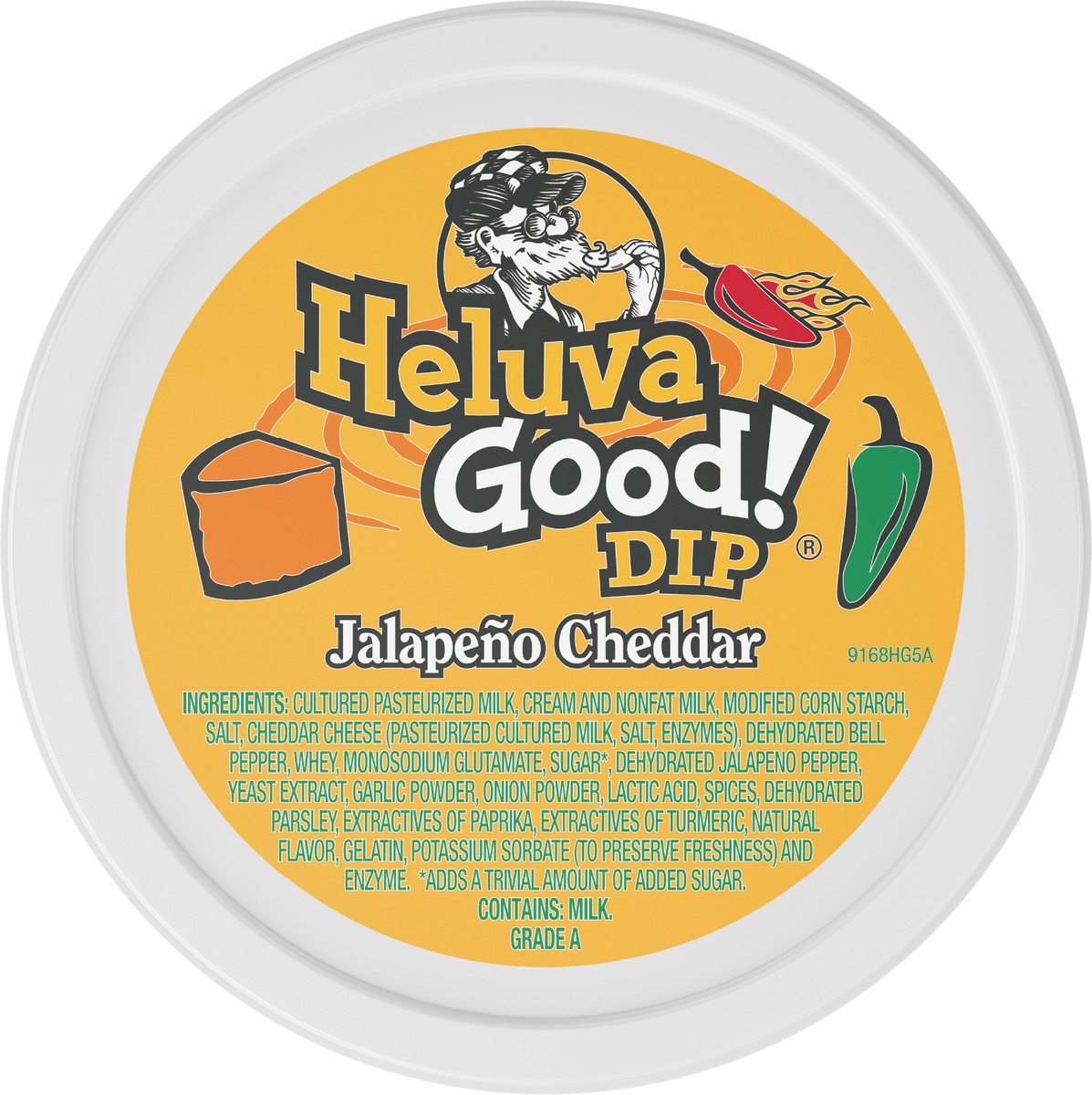 Heluva Good! Jalapeño Cheddar Dip packs a fiery jalapeño flavor, with a cheesy cheddar twist. A reliable crowd-pleaser and fan favorite, you really can't go wrong with our delicious dairy dip on the t…