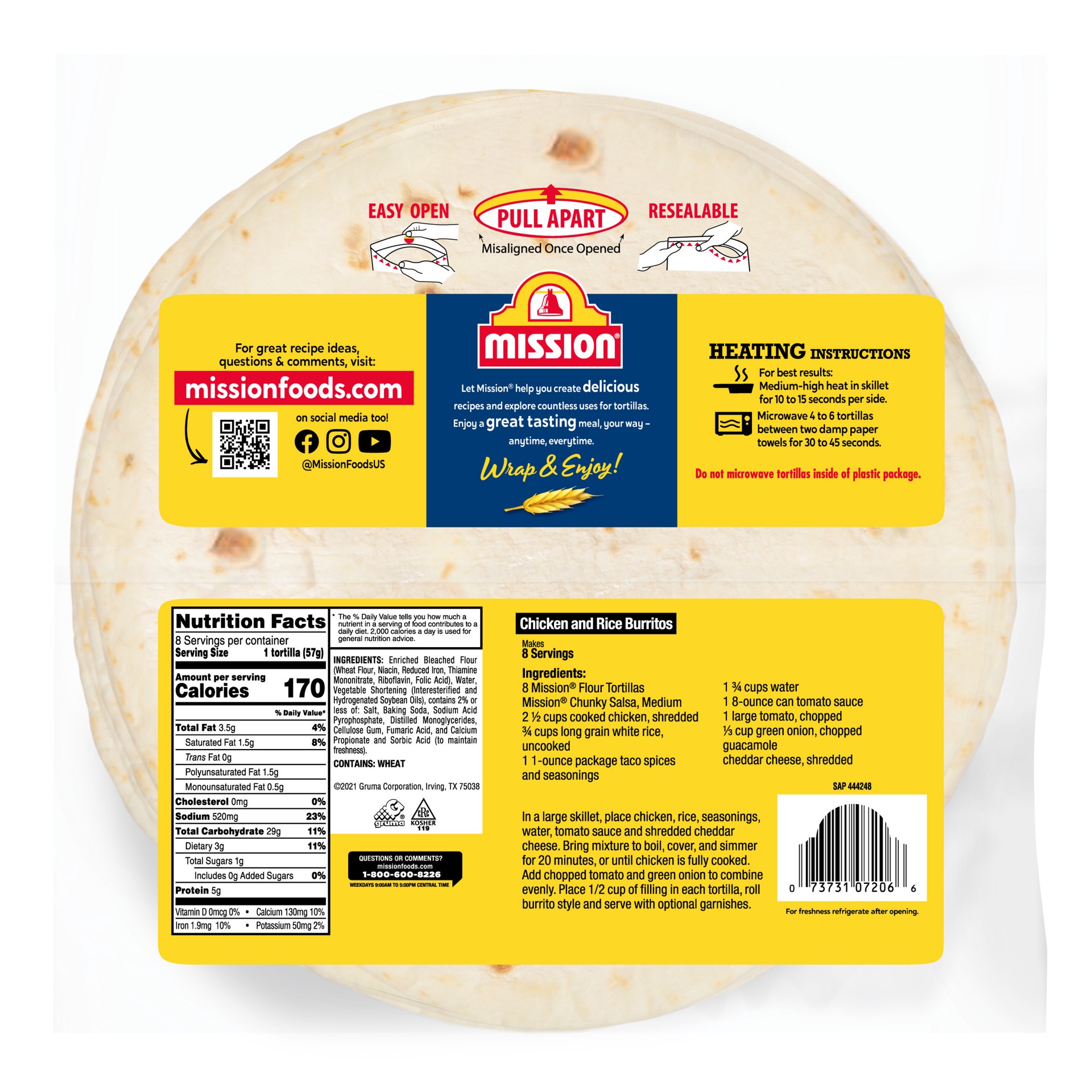- One 8-count package of Mission Restaurant Style Burrito Flour Tortillas