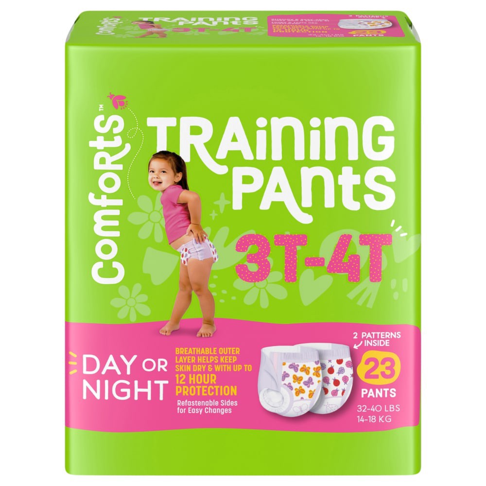 Comforts™ Day or Night Training Pants Girls 3T-4T (32-40 lbs) are hypoallergenic and made to keep your child's sensitive skin dry with up to 12-hour protection. The stretchy and refastenable sides mak…