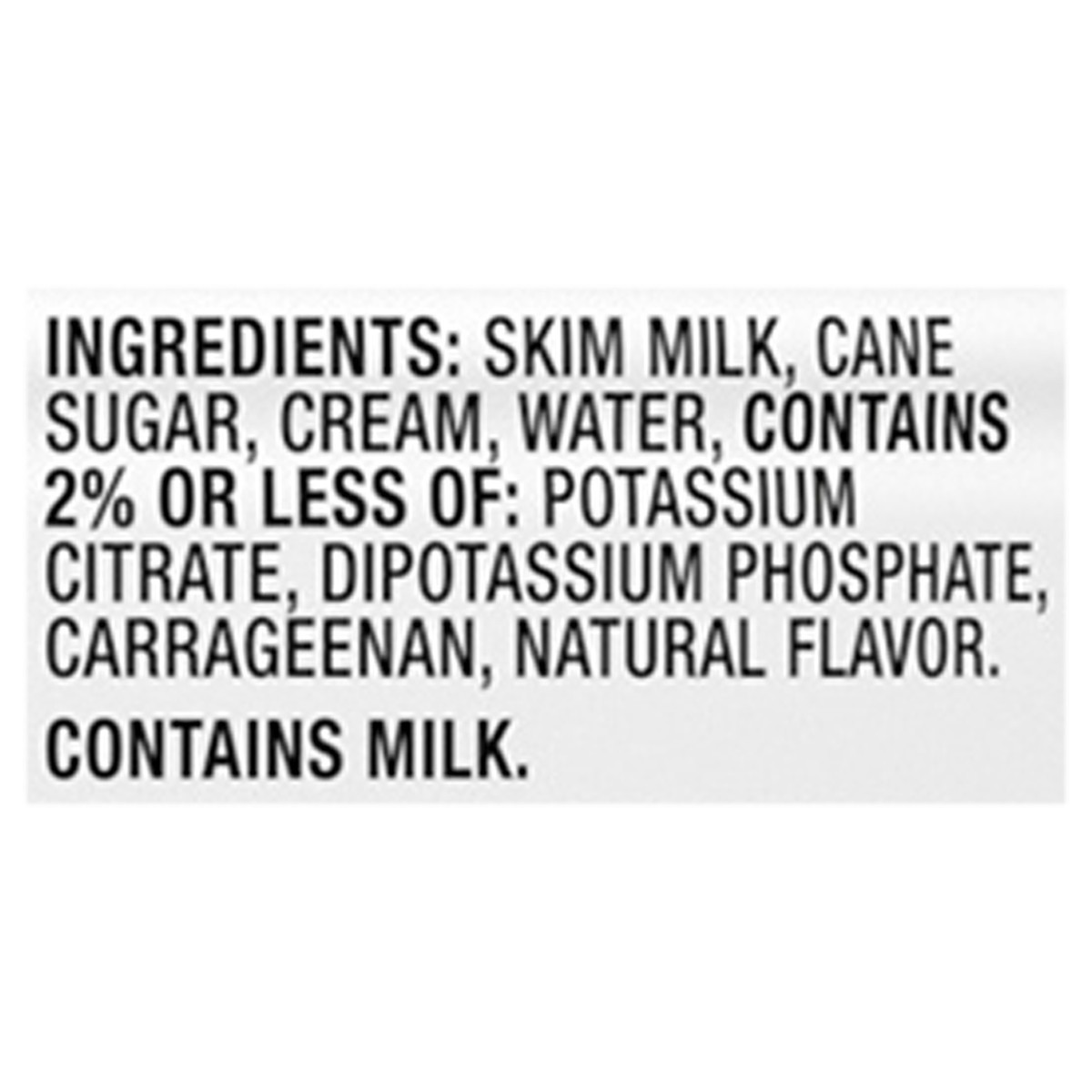INGREDIENTS: MILK; SUGAR; CREAM; CONTAINS 2% OR LESS OF: NATURAL FLAVORS; DIPOTASSIUM PHOSPHATE; POTASSIUM CITRATE; CARRAGEENAN