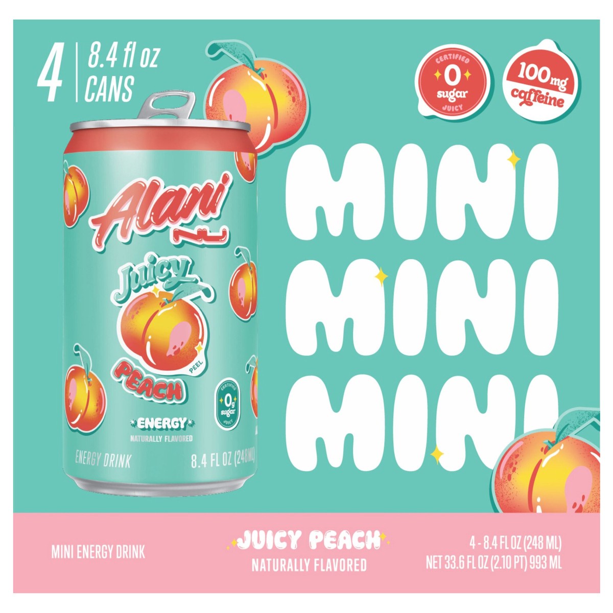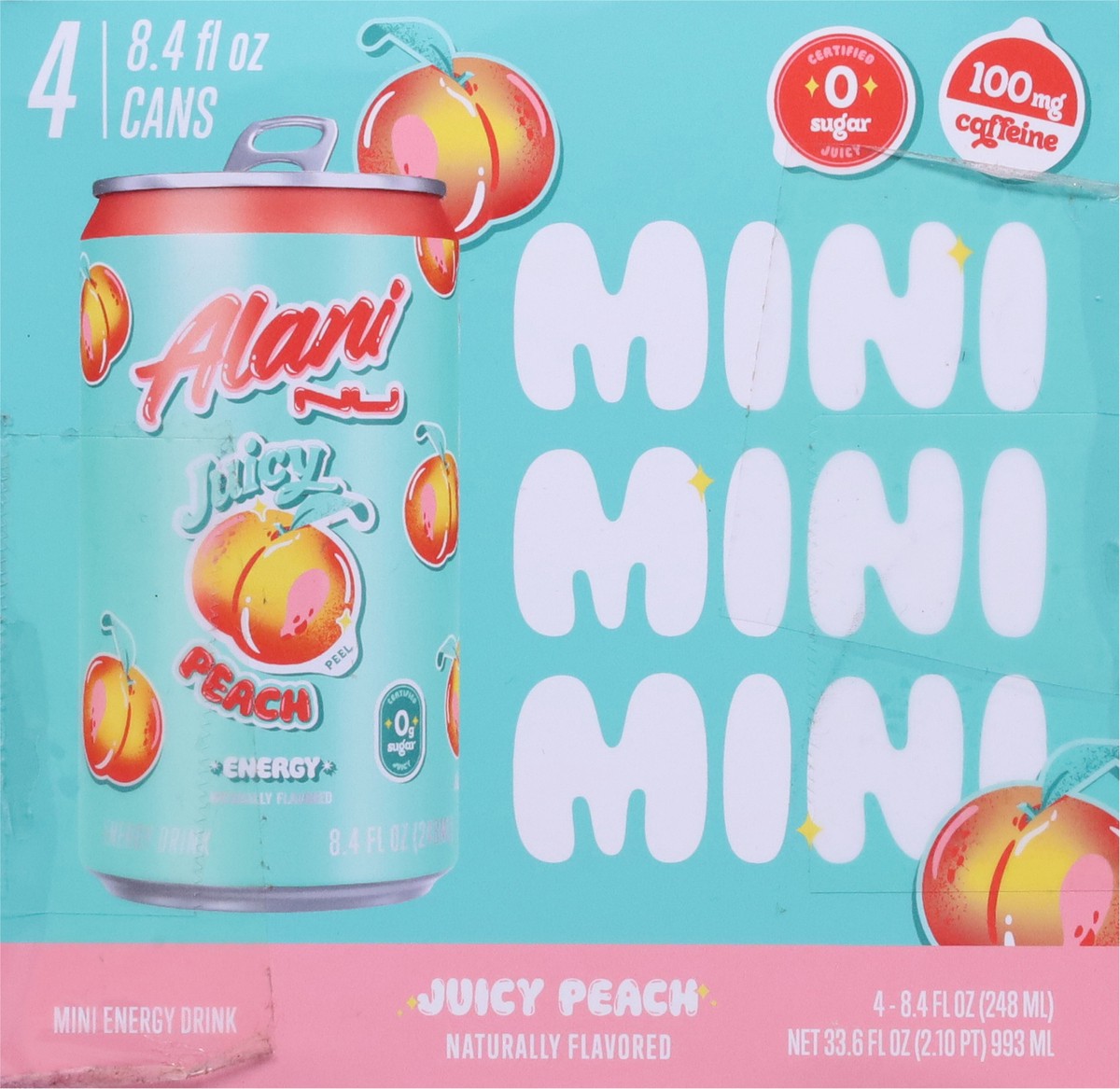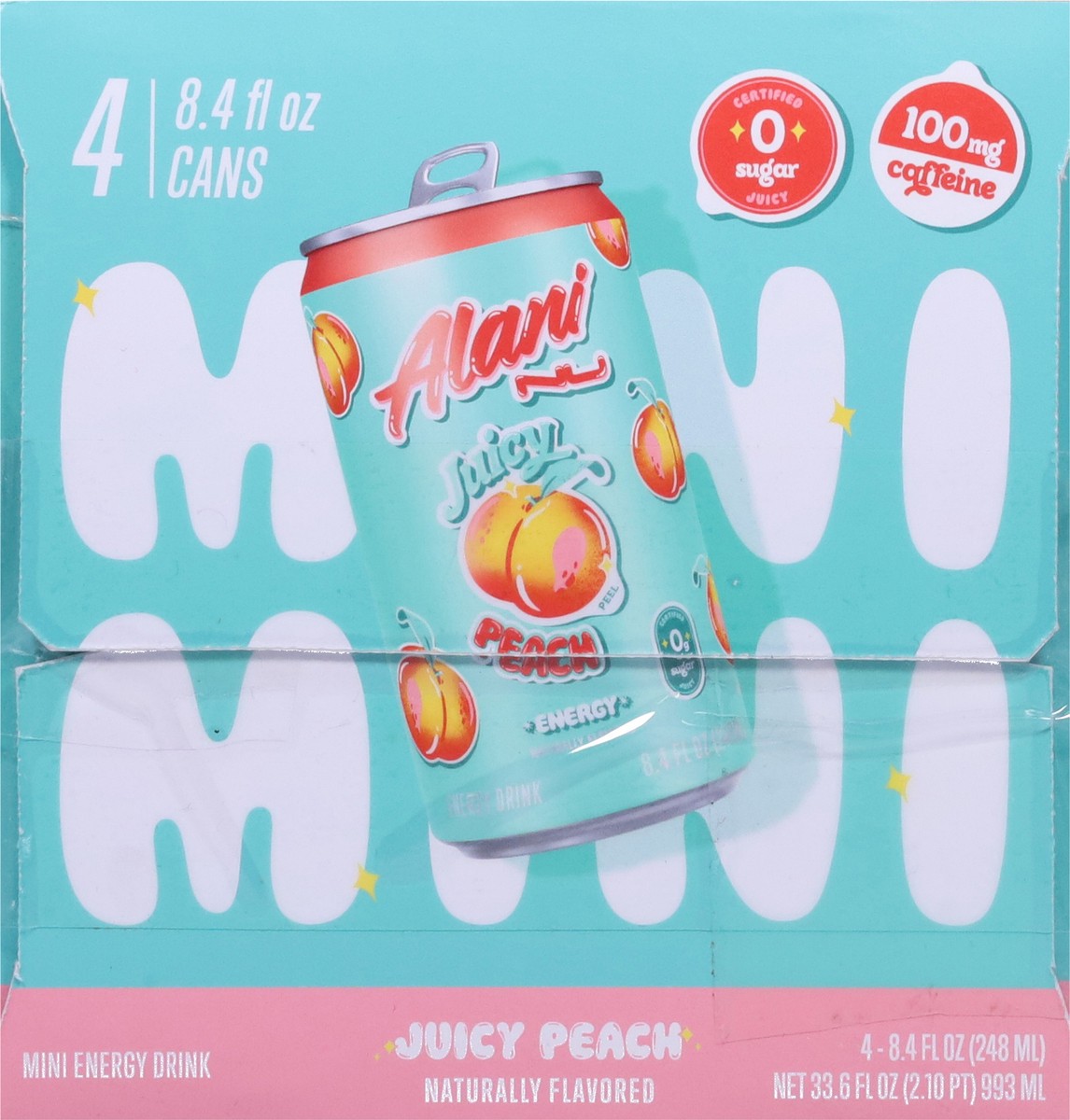 Alani Nu Energy Drink Mini Juicy Peach 8.4oz 4pk