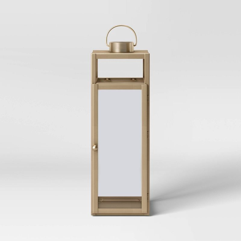 24" x 8" Decorative Metal Lantern Candle Holder Matte Gold - Threshold