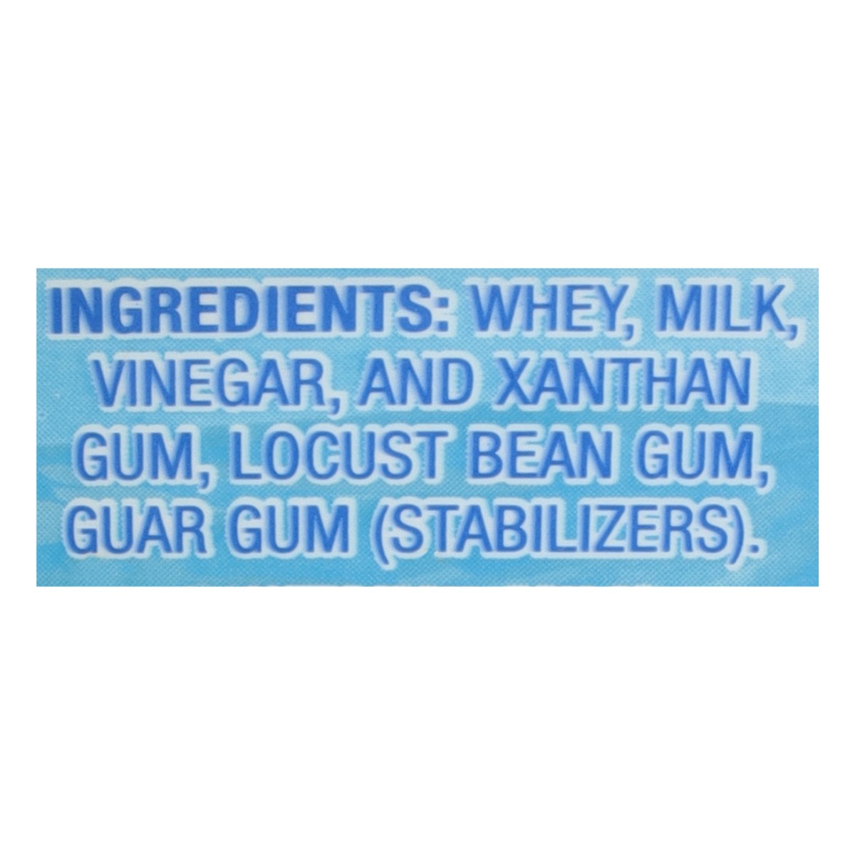 Whey, Milk, Vinegar, and Xanthan Gum, Locust Bean Gum, Guar Gum (Stabilizers).