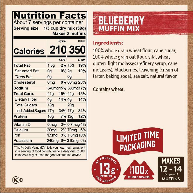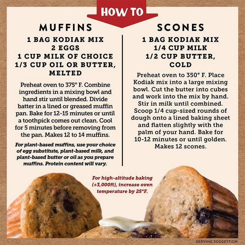 Kodiak Blueberry Muffin Mix is designed for those who want more from their breakfast. This protein muffin mix is made with 100% whole grains and blueberries, offering 13 grams of protein per serving t…