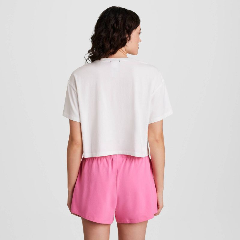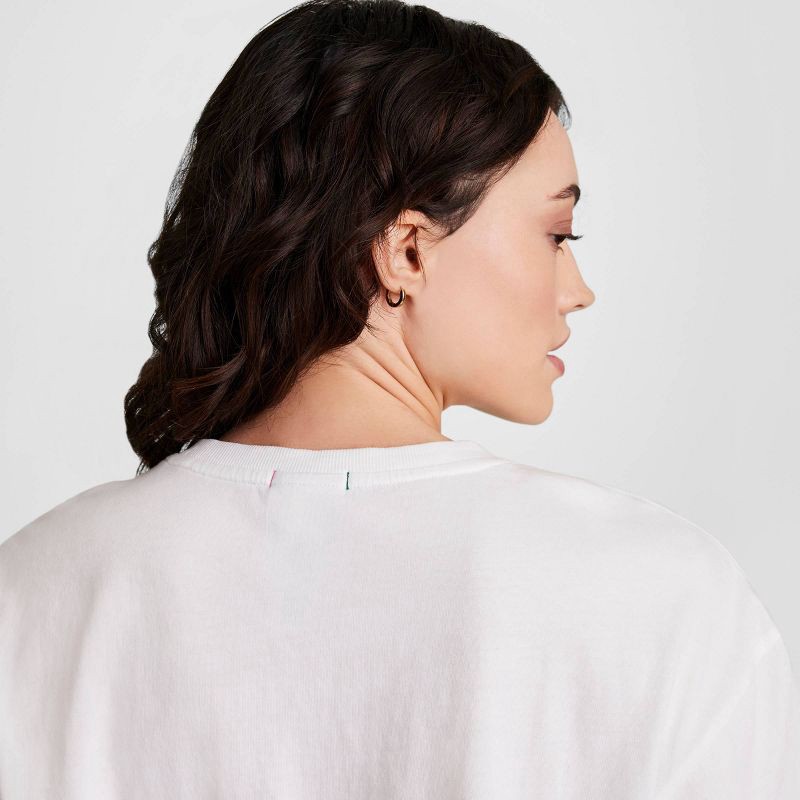 - Loose fit women's crewneck cropped tee, 20-inch body length