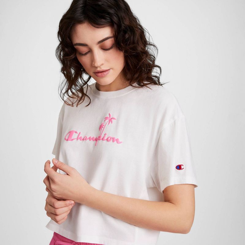 Chill Vibes, Champion EnergyChannel laid-back style with the Champion Iconic Cropped Palm T-Shirt. Crafted from 100% cotton jersey, this women's loose-fitting tee delivers an ultra-soft feel and easy ā¦
