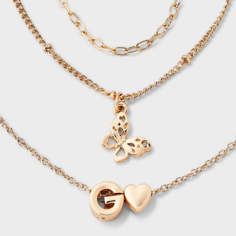 Girls' G Initial with Choker and Layered Necklace Set - art class™ Gold