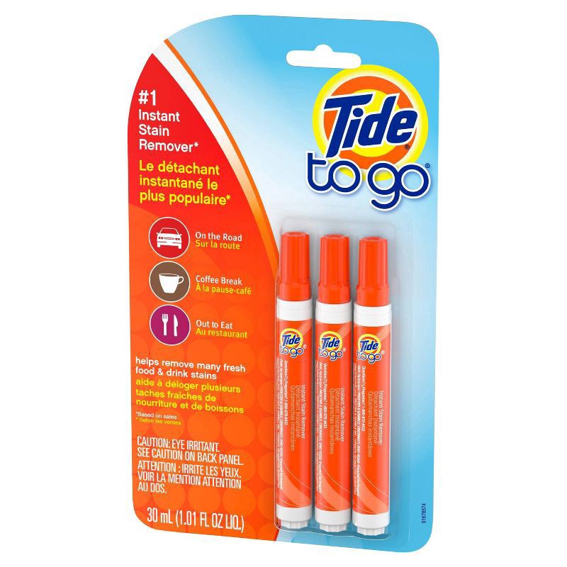 Tide Stain Remover for Clothes with 50% More Stain-Fighting Power and Faster Dry Time, Removes 100+ Stains, Tide To Go Pen, Instant Stain Remover for Clothes, Travel & Pocket Size, 3 Count (Pack of 1)