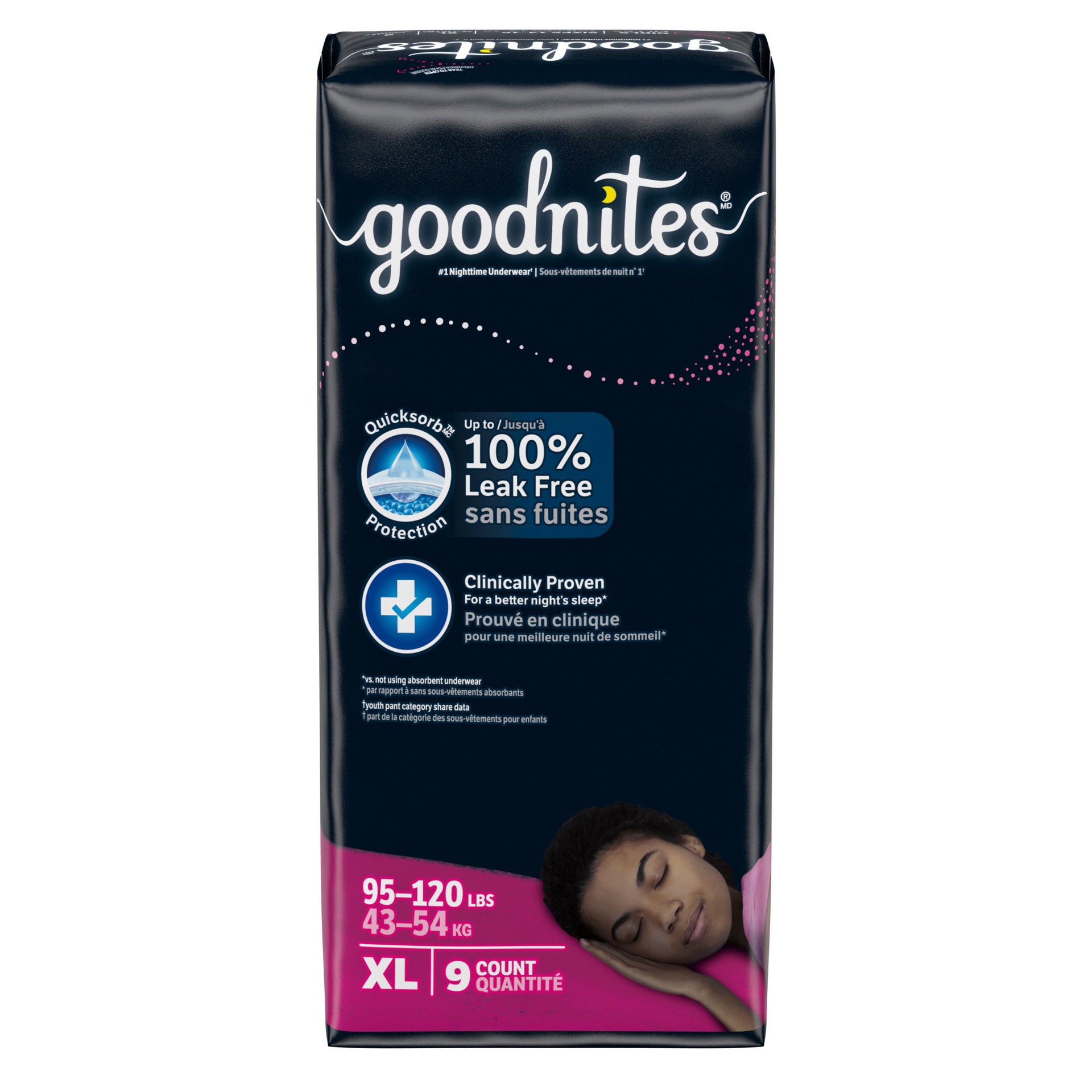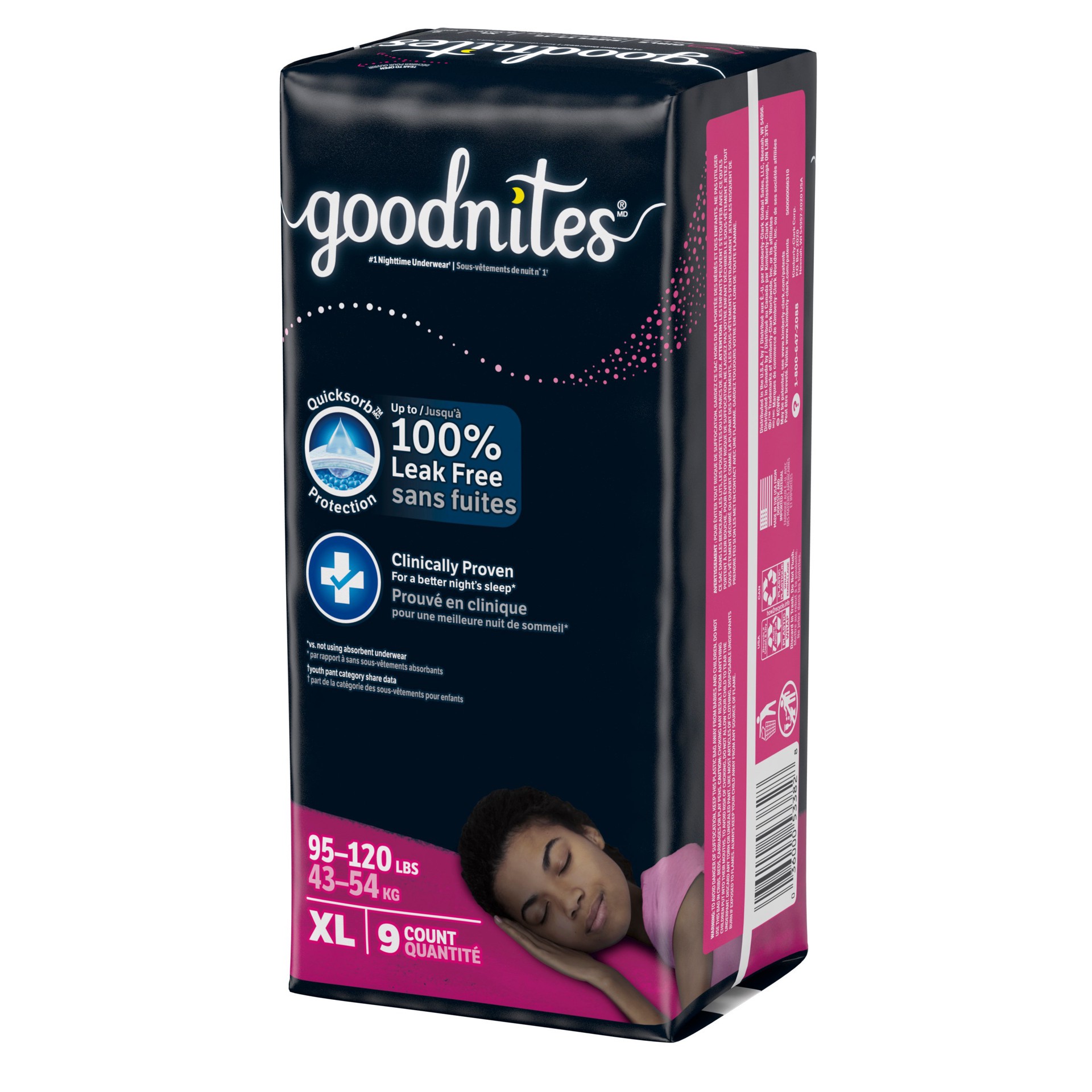 Goodnites Girls' Nighttime Bedwetting Underwear Xl (95-140 Lb) - 9 Count