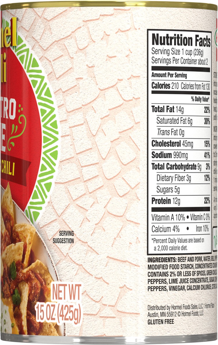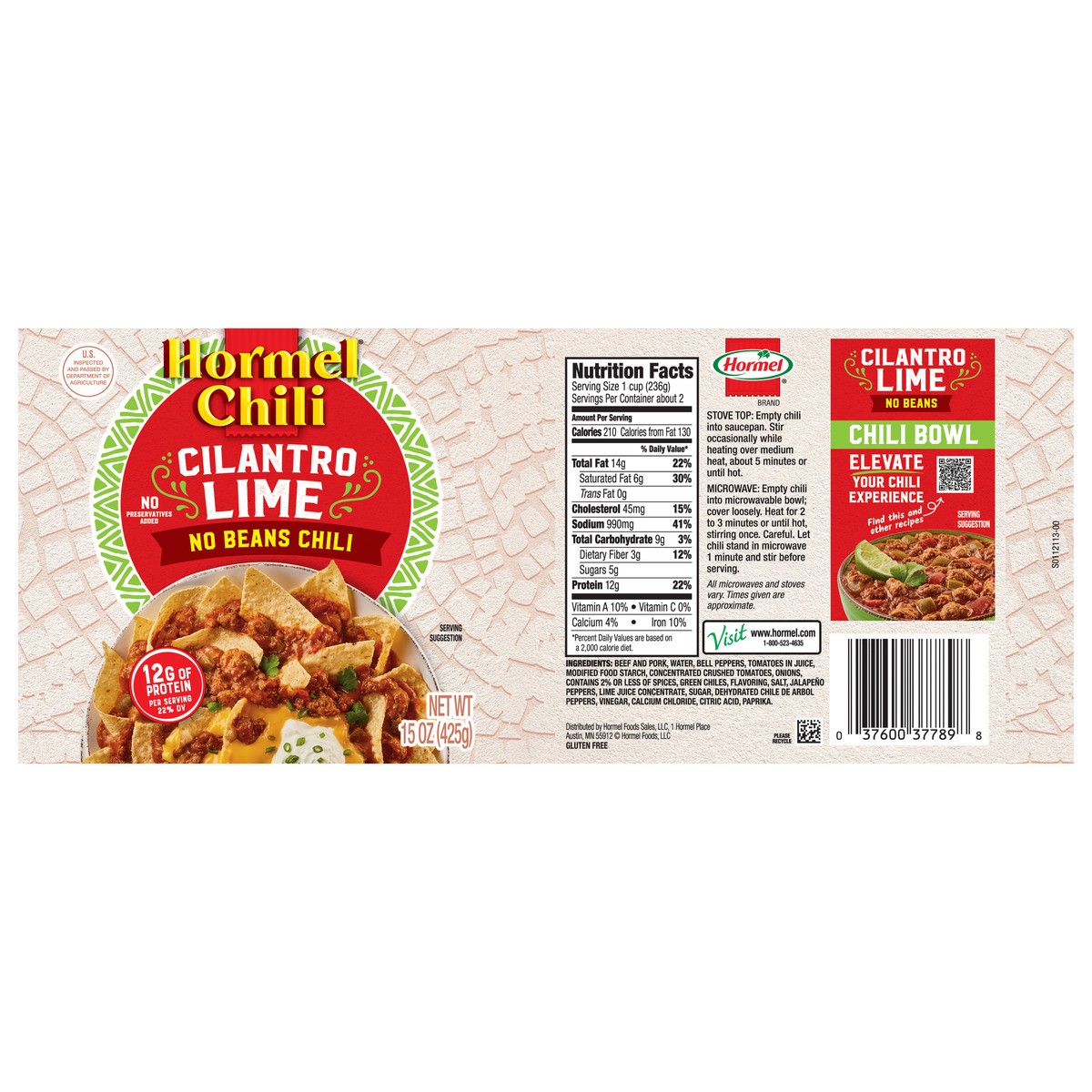 - Includes one 15 ounce steel can of HORMEL Cilantro Lime Chili