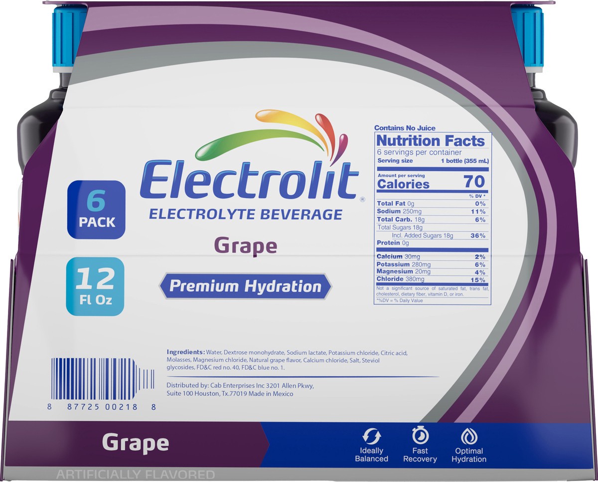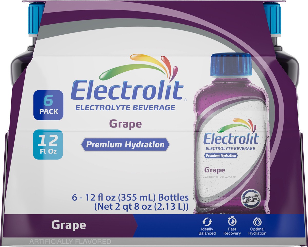 Electrolit Premium Hydration Grape Flavored Electrolyte Beverage, 12 fl oz bottle, 6 pk