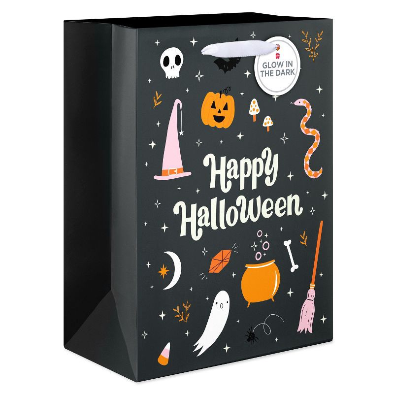 - This American Greetings large gift bag features charming Halloween icons including a ghost, pumpkin, witch hat, and more with 'Happy Halloween' text.